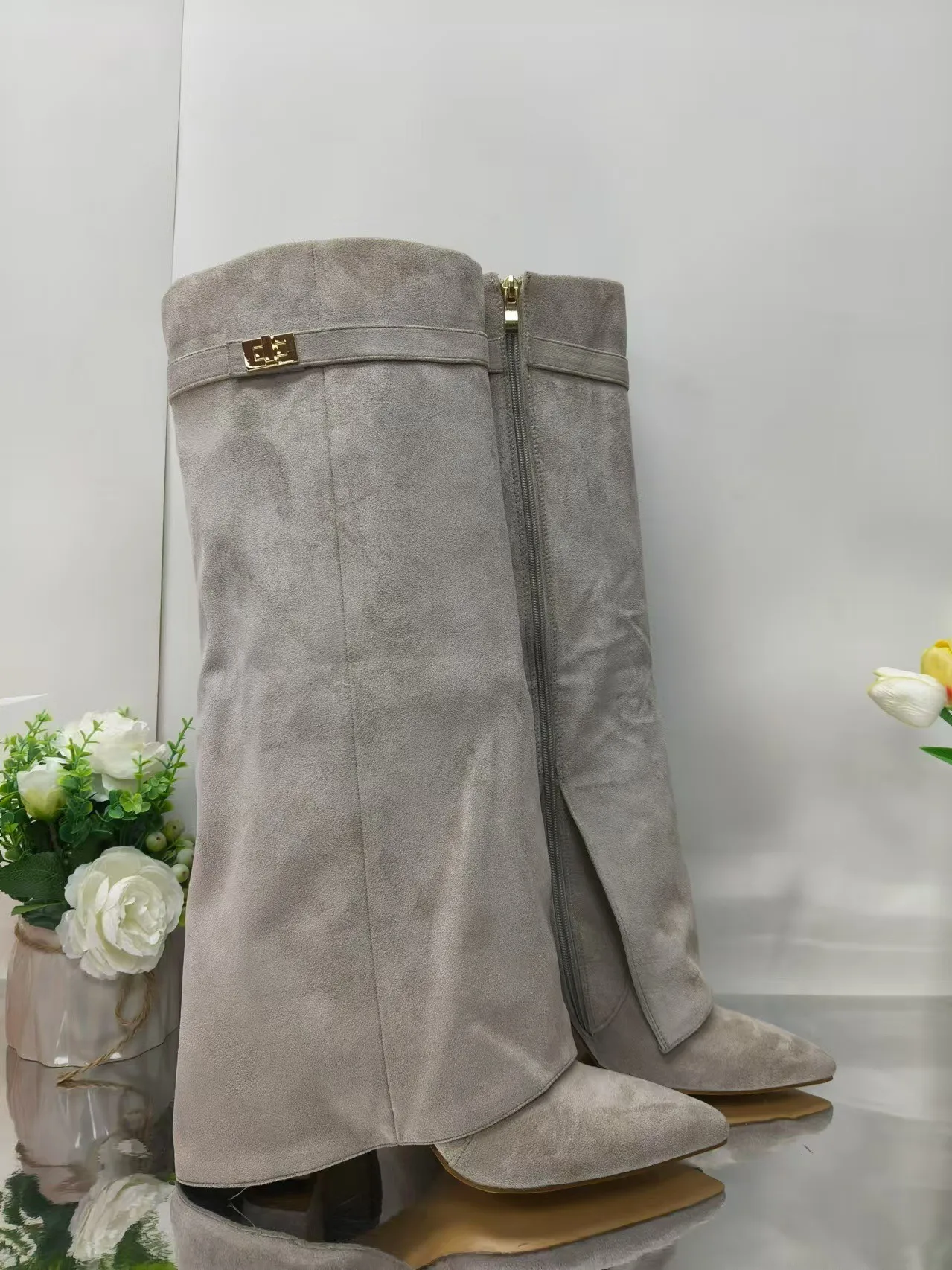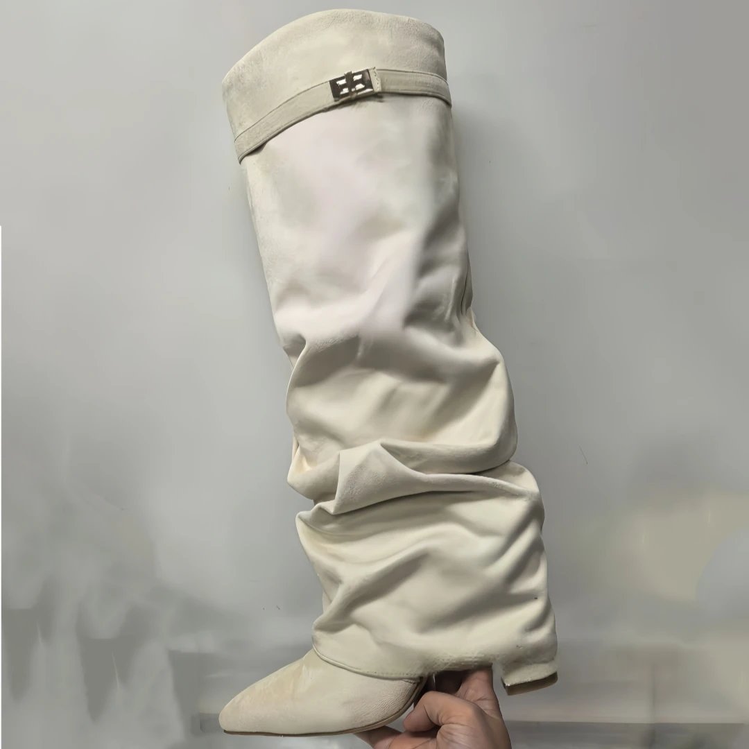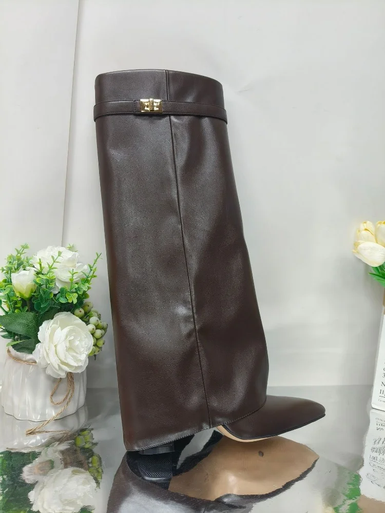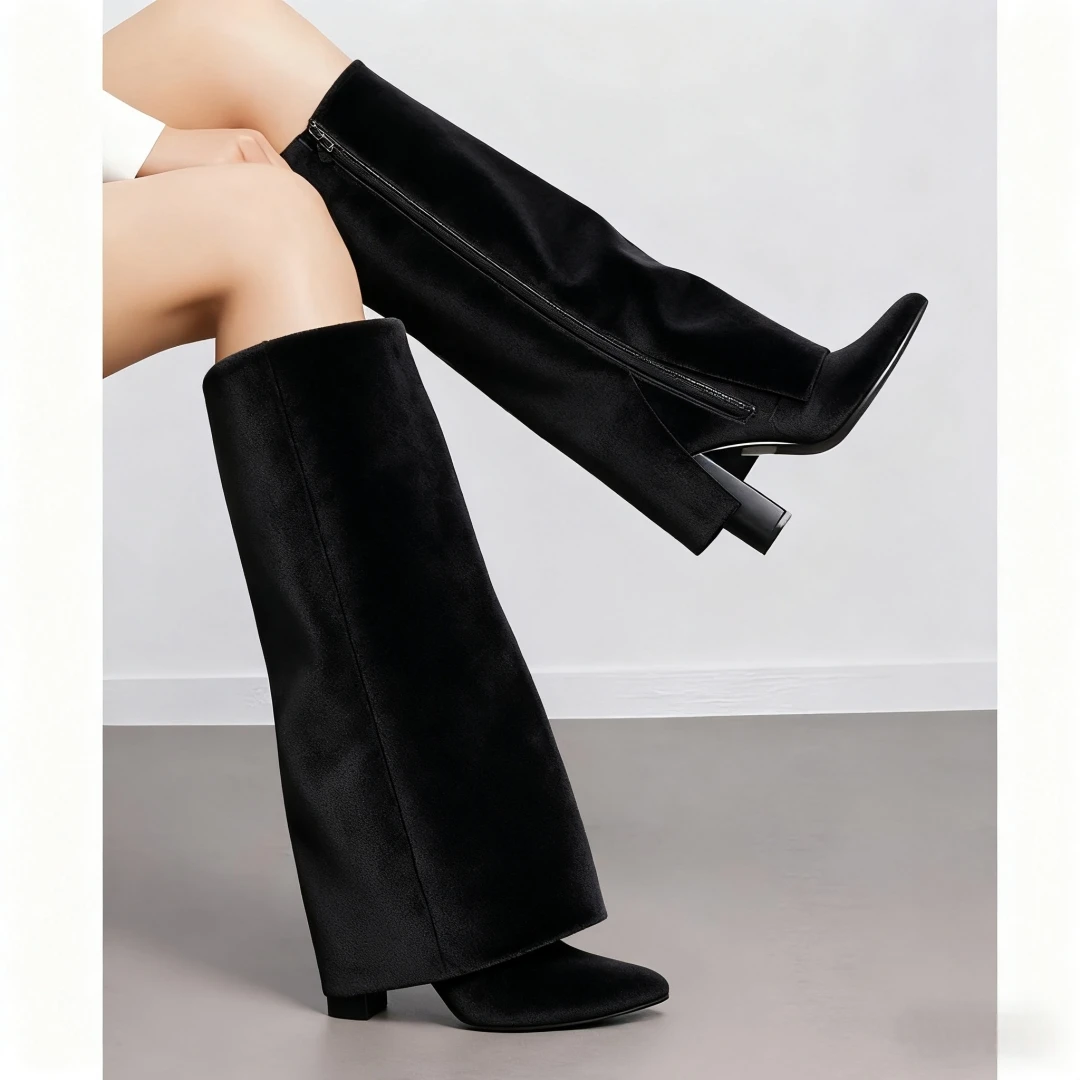 Nuovi stivali europei e americani con gonna a gamba dritta a punta per l’autunno e l’inverno per le donne, stivali con pantaloni con tacco alto spesso di grandi dimensioni