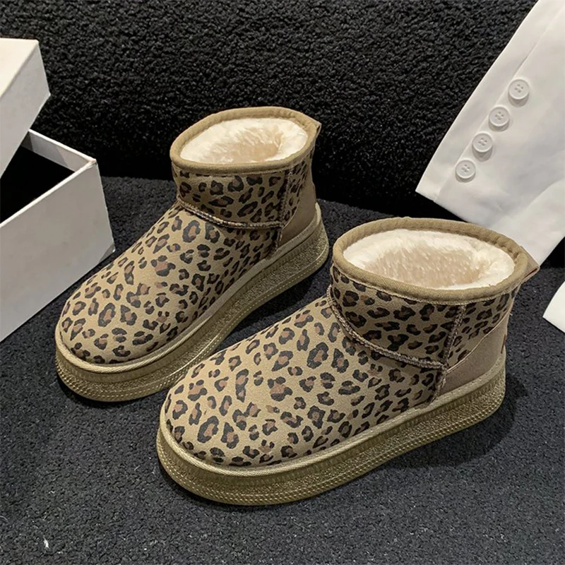 Stivali in pelliccia con stampa leopardata in pelle scamosciata per donna Inverno 2025 Stivali da neve caldi in peluche spesso Piattaforma da donna Scarpe in cotone antiscivolo Donna