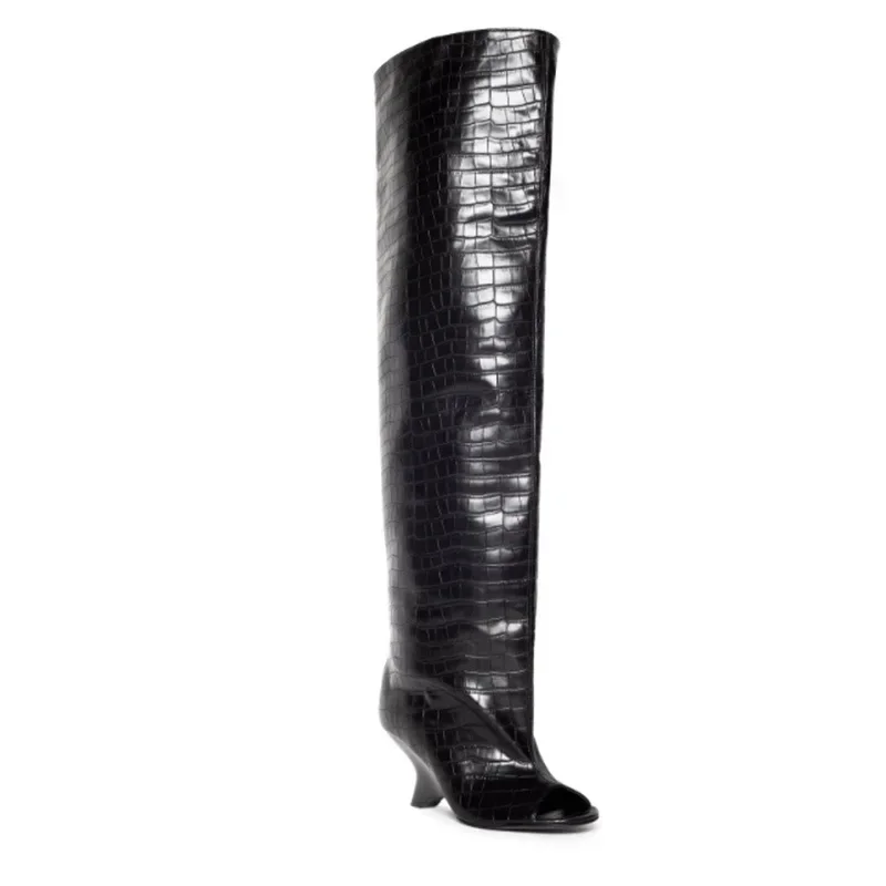 2025 Primavera e Autunno Bocca di Pesce da Donna Tacchi Alti Spessi Stivali da Donna al Ginocchio Moda Pendenza Tacco Grandi Stivali Estivi Freschi 12025 Primavera e Autunno Bocca di Pesce da Donna Tacchi Alti Spessi Stivali da Donna al Ginocchio Moda Pendenza Tacco Grandi Stivali Estivi Freschi