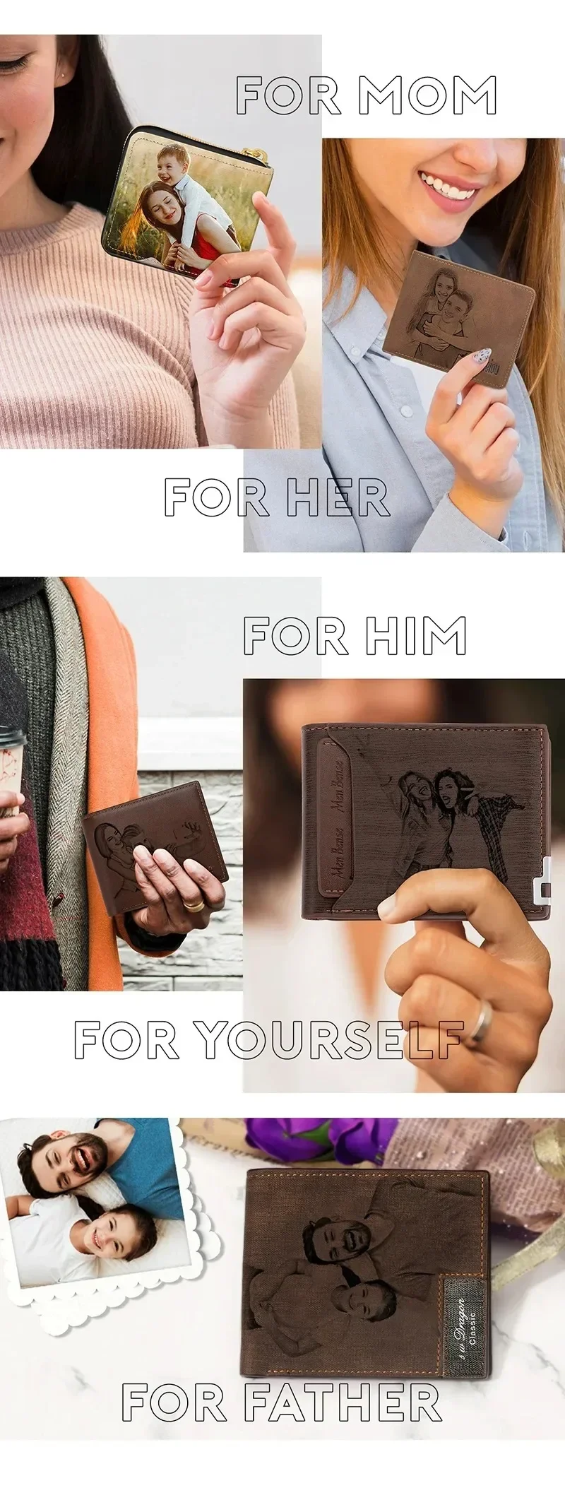 Portafoglio fotografico personalizzato per papà – Regalo personalizzato per la festa del papà da uomo con cerniera e tasca portamonete, portafogli porta carte con foto
