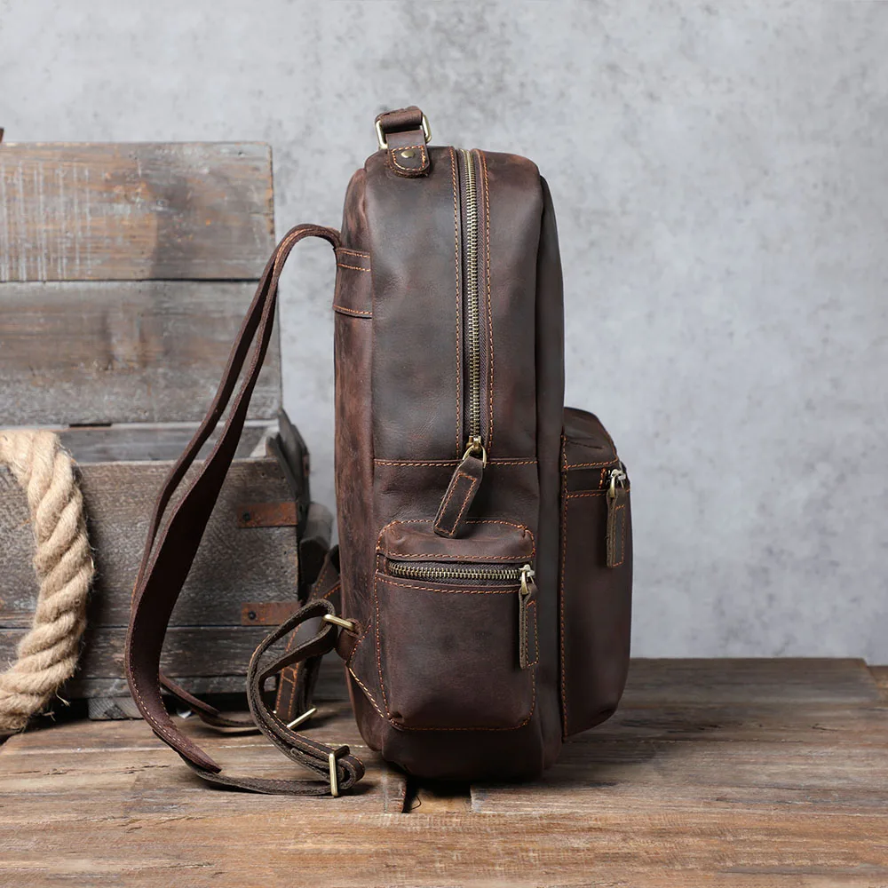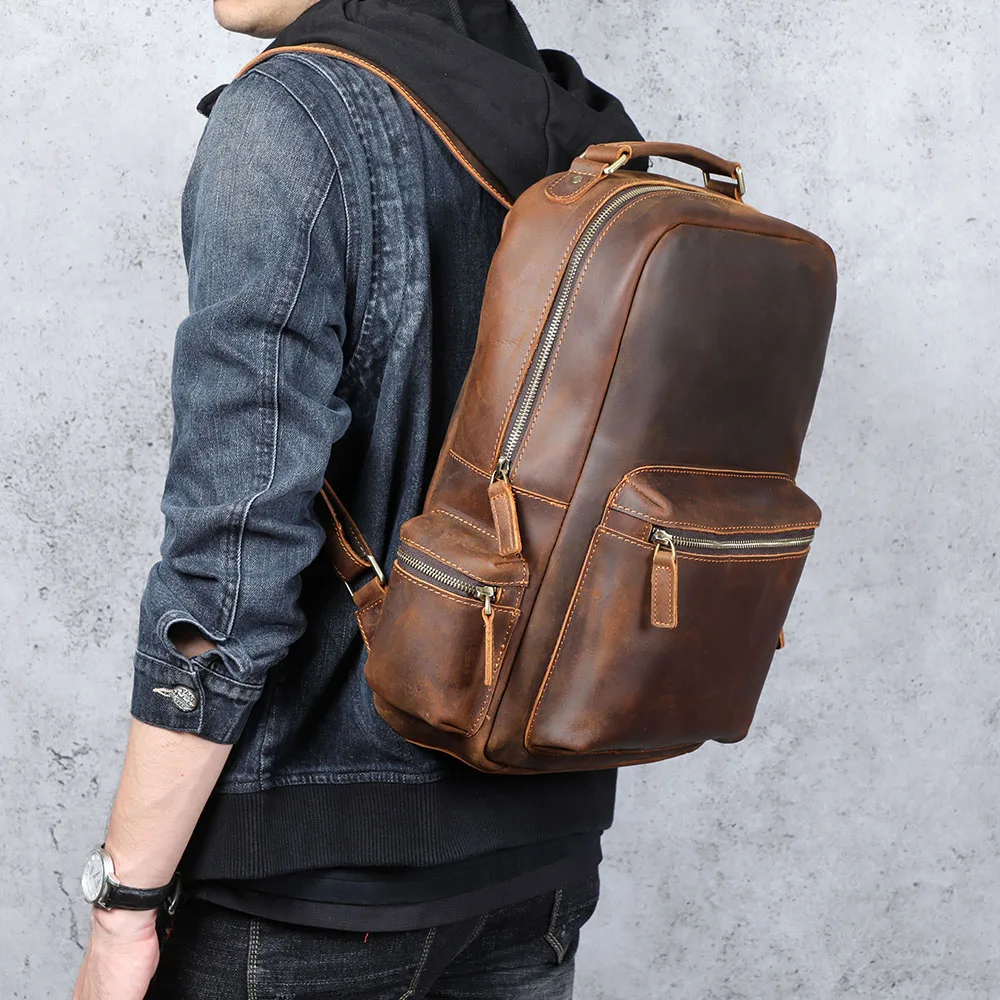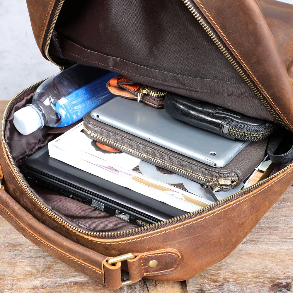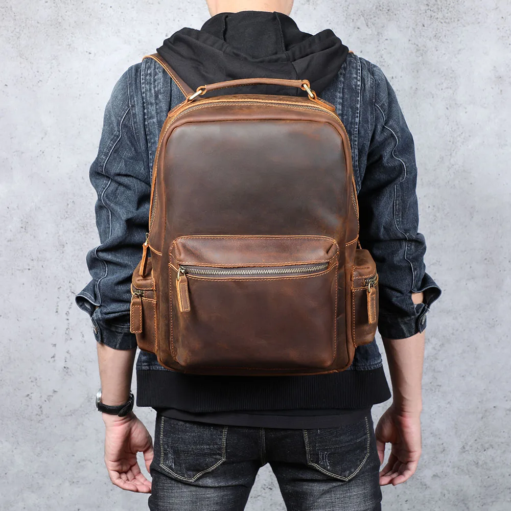 S.WORKER Zaino vintage in vera pelle da uomo Borsa a tracolla per laptop da 14 pollici in pelle bovina Borsa da scuola classica casual Crazy Horse da viaggio