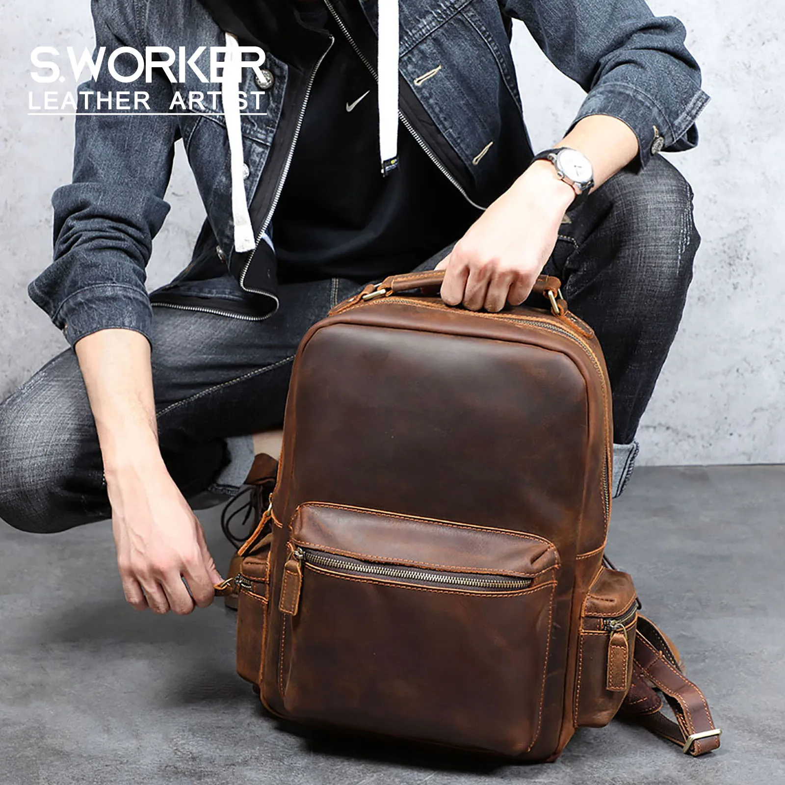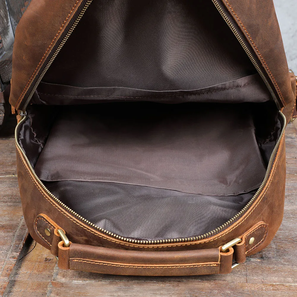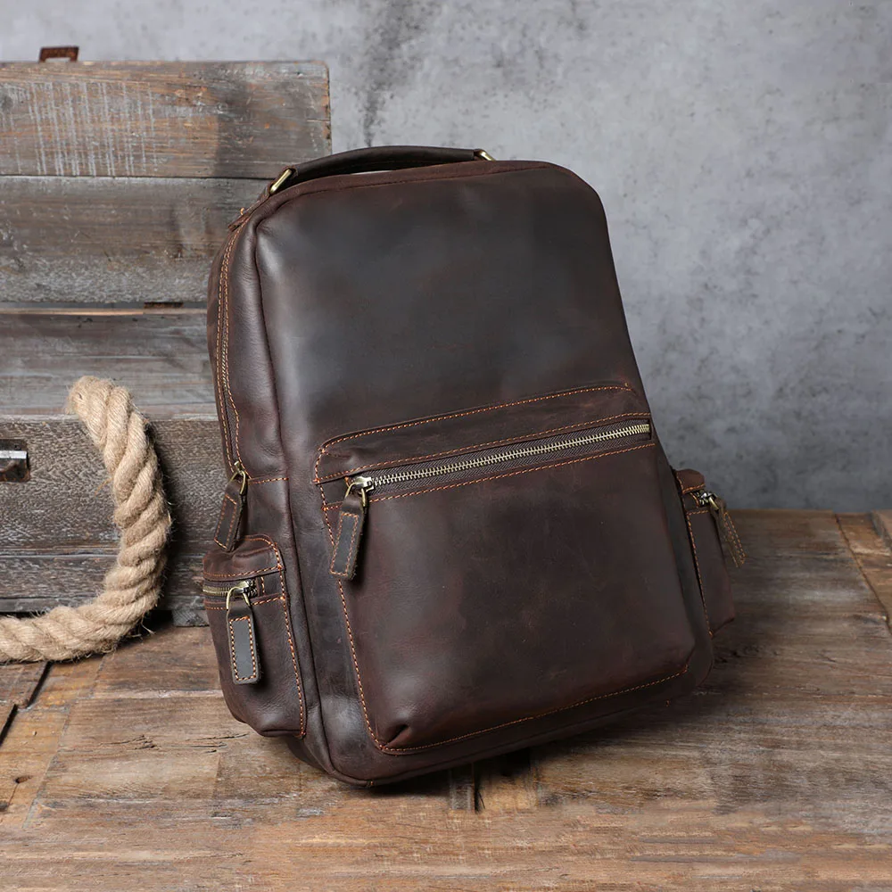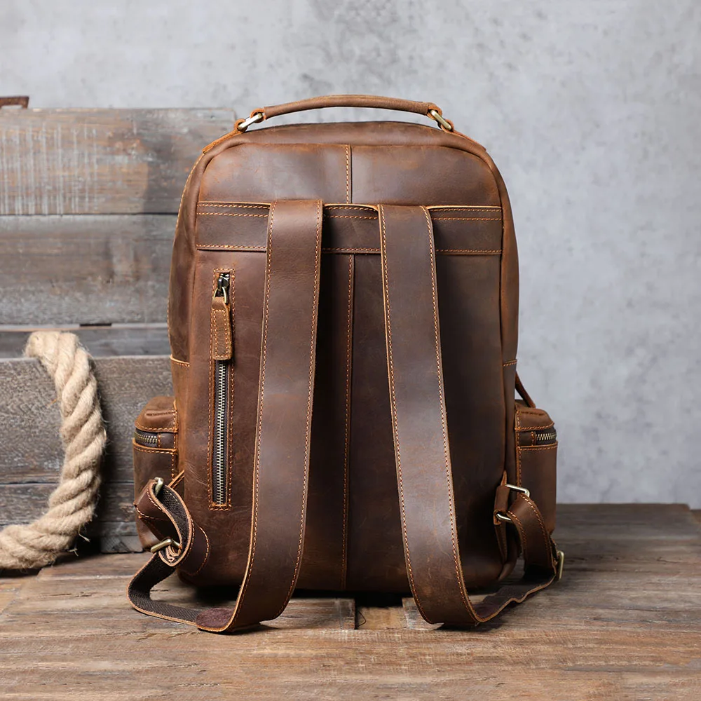 S.WORKER Zaino vintage in vera pelle da uomo Borsa a tracolla per laptop da 14 pollici in pelle bovina Borsa da scuola classica casual Crazy Horse da viaggio