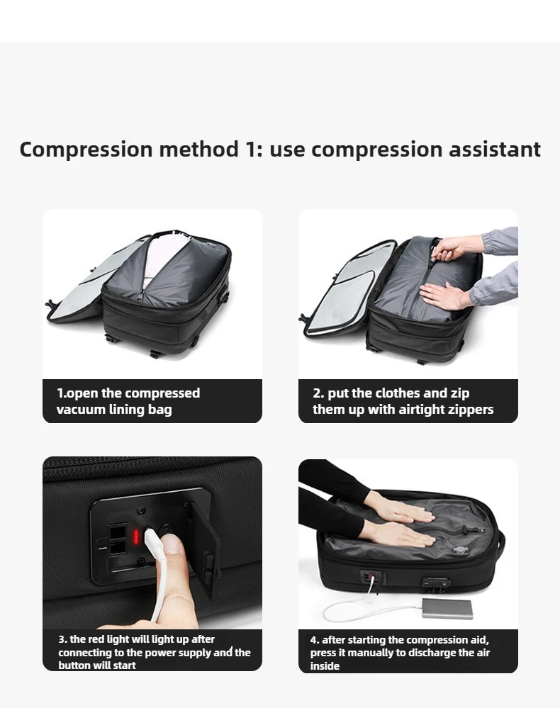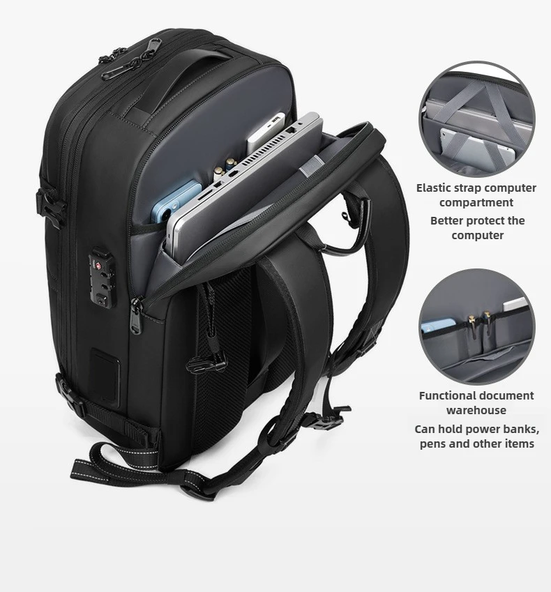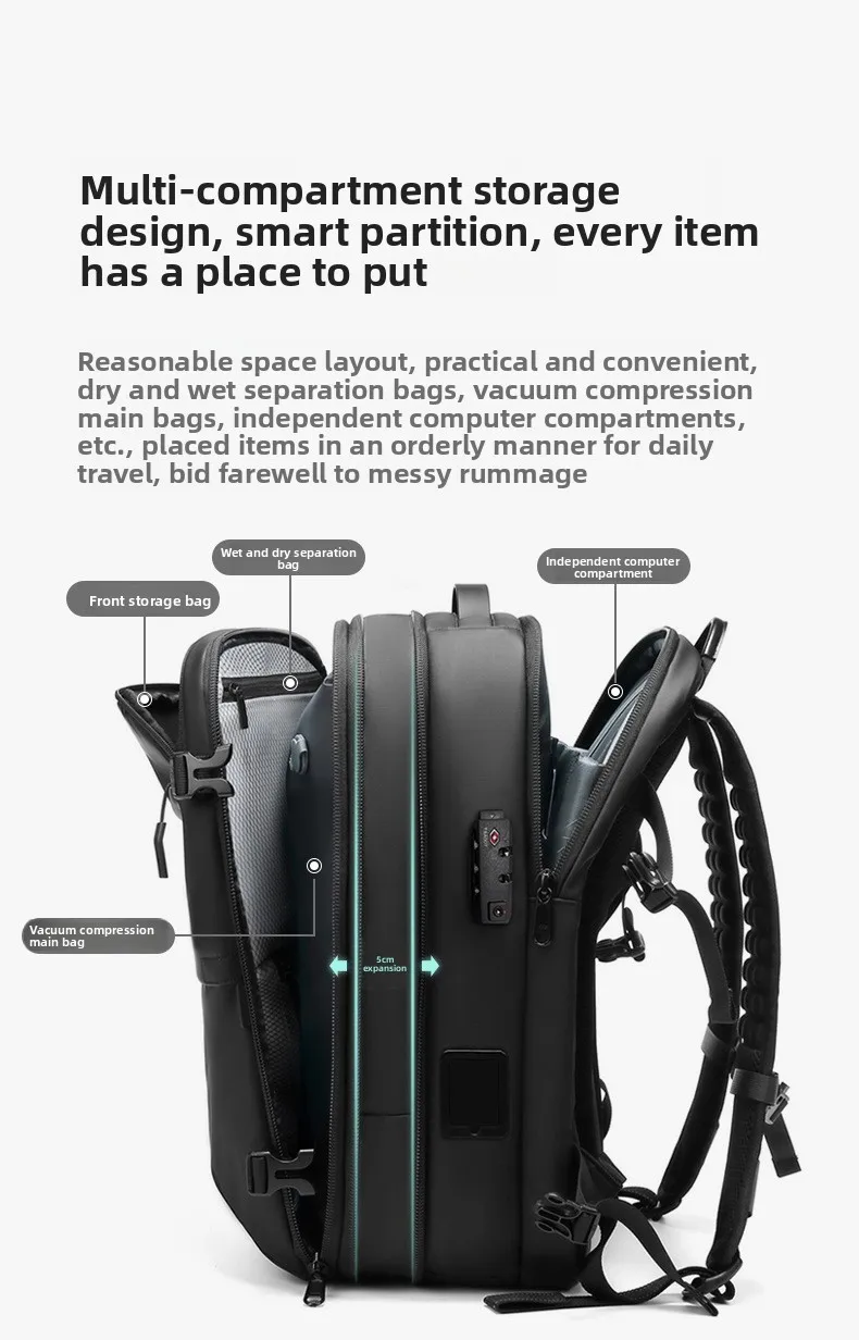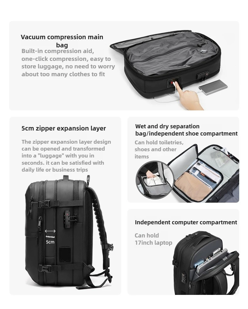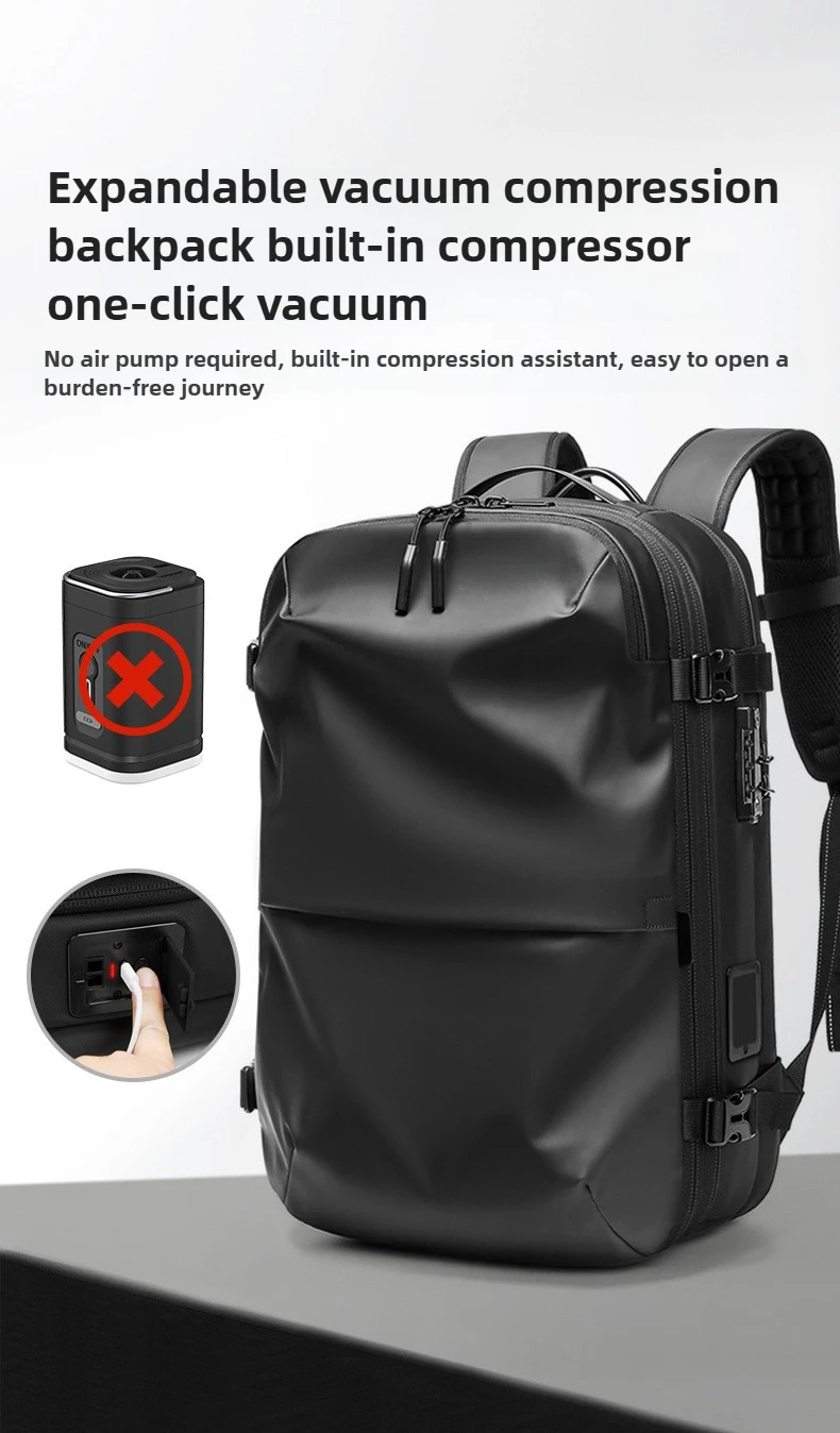 Zaino per laptop da lavoro con compressione sottovuoto One-Touch per uomo con borsa da lavoro da viaggio resistente all’acqua con espansione da 5 cm