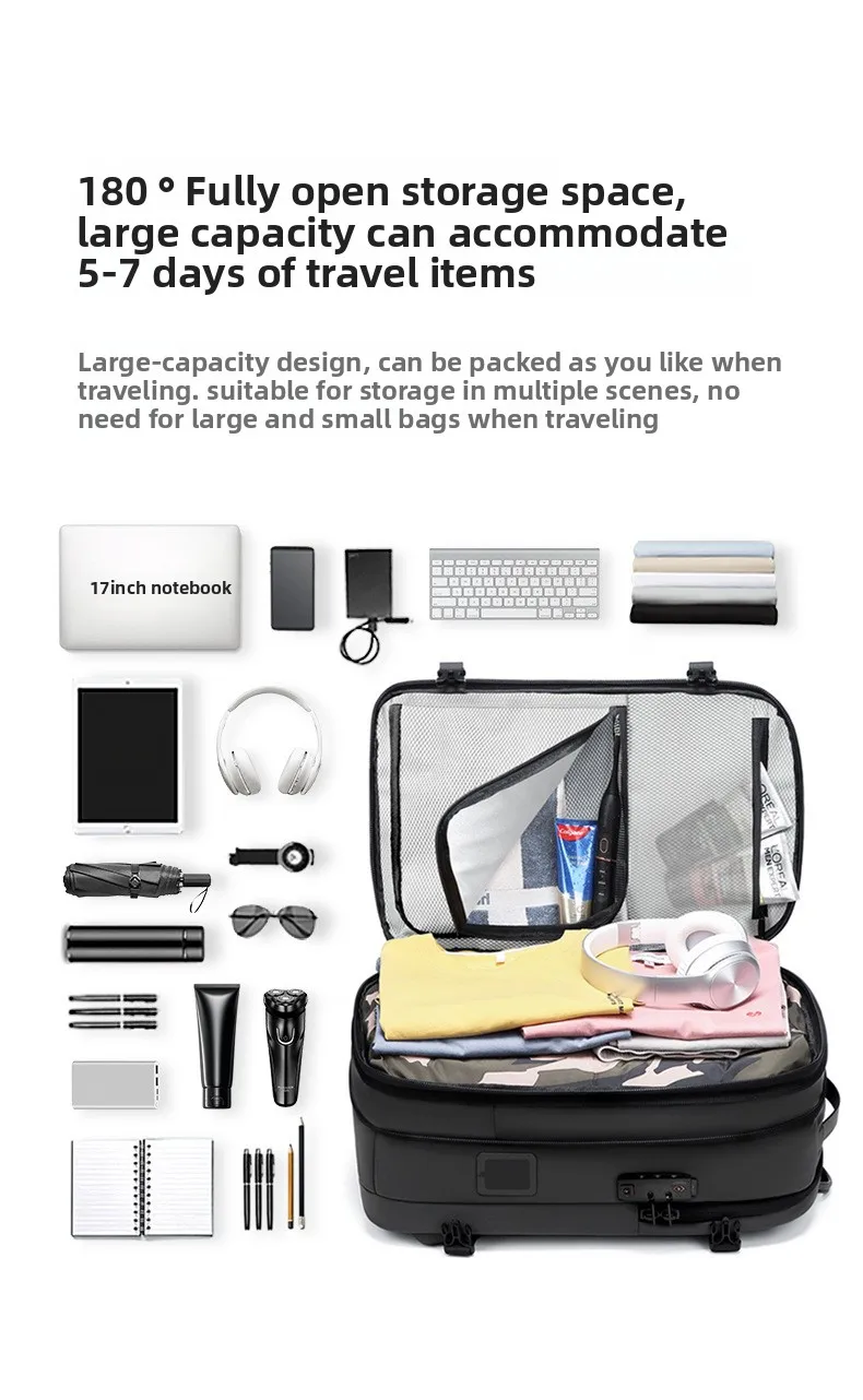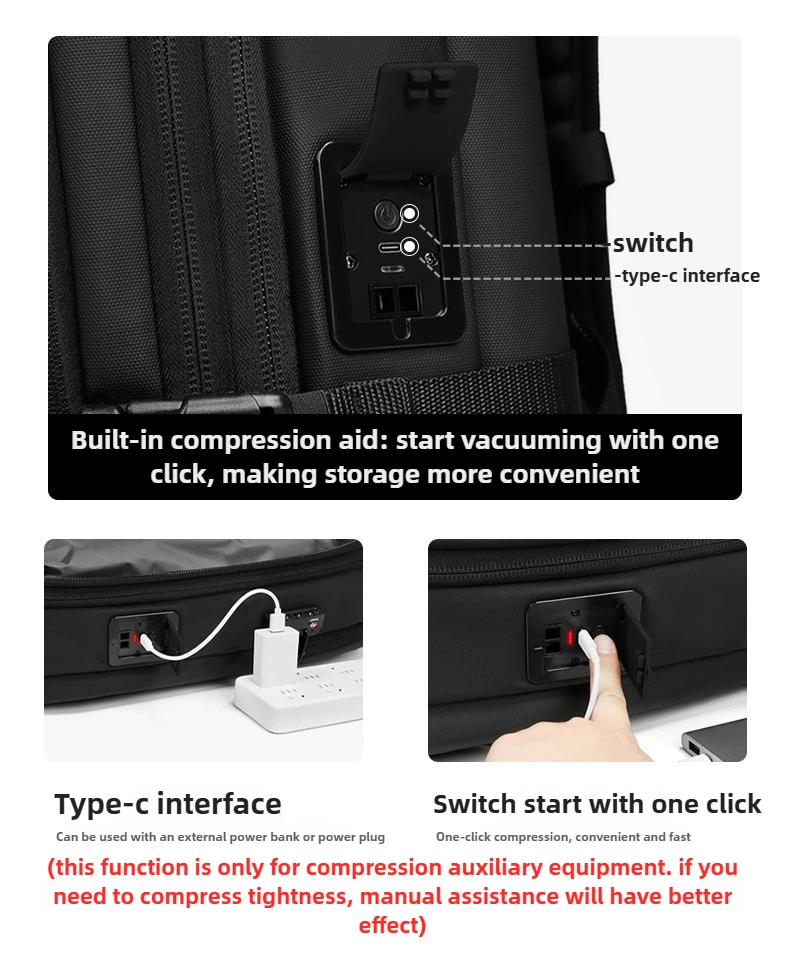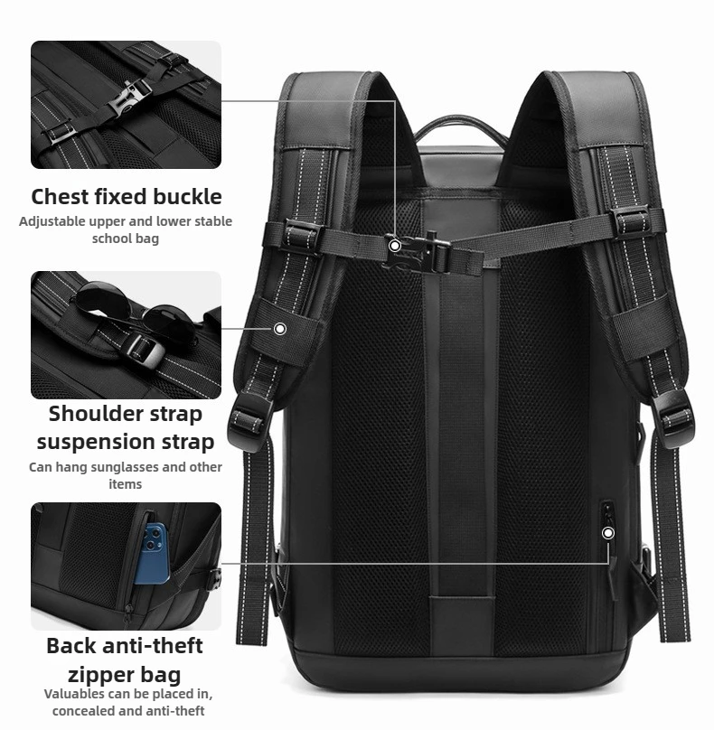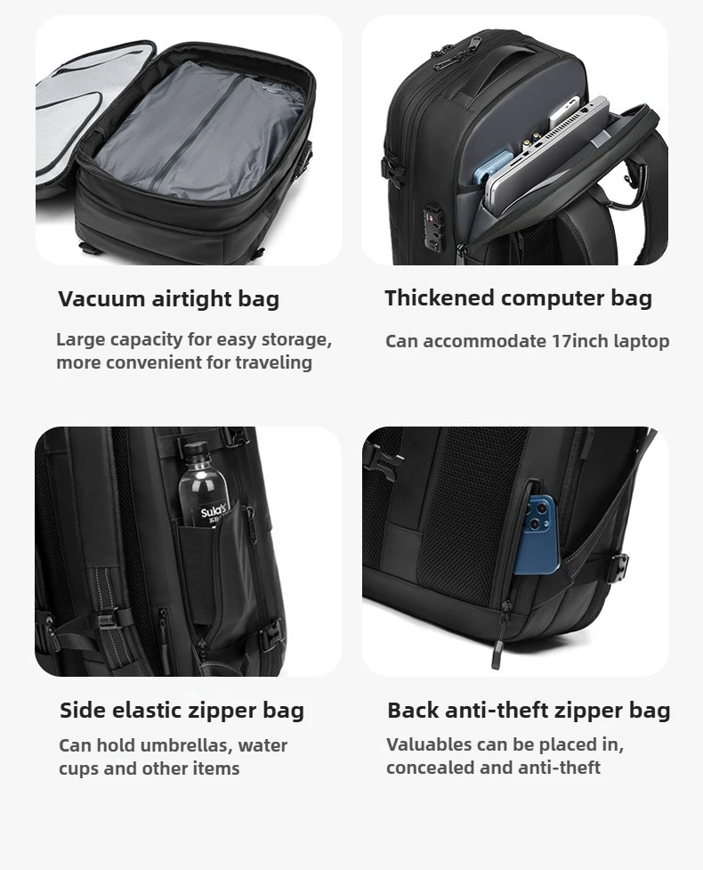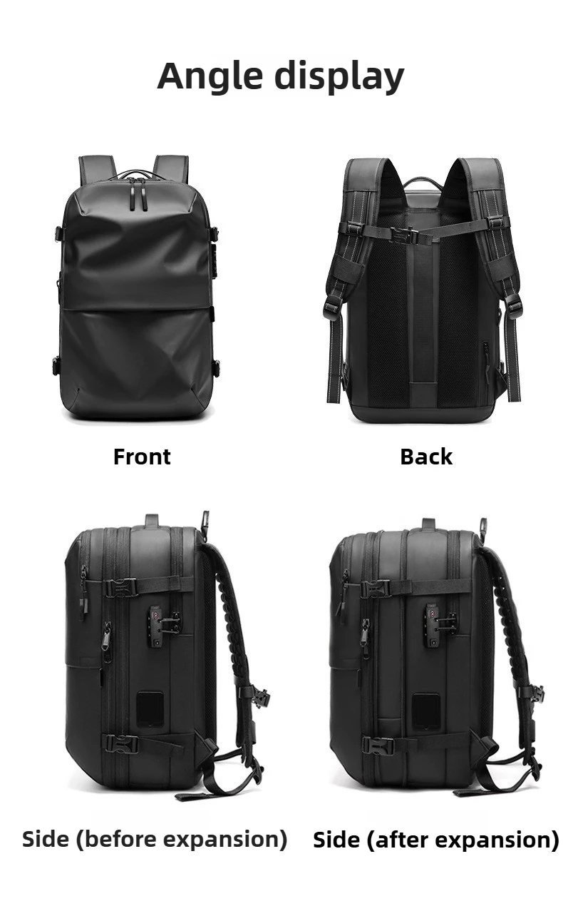 Zaino per laptop da lavoro con compressione sottovuoto One-Touch per uomo con borsa da lavoro da viaggio resistente all’acqua con espansione da 5 cm