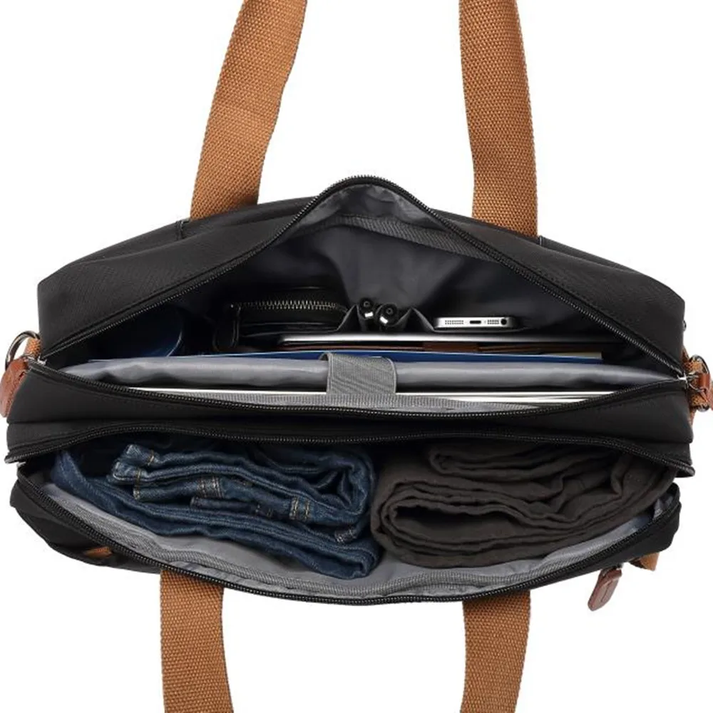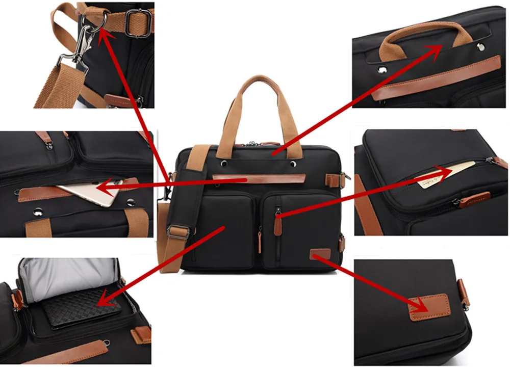 Informazioni relative al prodottoMateriale: tela/nylonFodera: fodera in poliestere impermeabile 210DMetodo di copertura aperta: cernieraStruttura interna della borsa: tasca per computer, tasca per cellulare, tasca con cerniera laminata, tasca per documenti, custodia per fotocamera, tasca con cernieraFunzione: resistente all’usura, leggero, impermeabile, antiurto, traspiranteGenere applicabile: neutro/maschio e femminaTipi di prodotto applicabili: IPAD, laptop, tablet, ecc.Durezza: morbidaStile: sport alla modaNumero cinturino: treParti di sollevamento: impugnatura morbidaStile: borsaQuadrato tascabile a sezione trasversaleBorsa esterna per borsa stereoCapacità: 20-35 litriUsi: Viaggi/Tempo libero/Affari/Aprendimento/ComputerDimensioni/peso dell’aspetto del pacchetto:17,3 pollici: 45x32x16 cm15,6 pollici: 40X30X13 cm2: Imballaggio1x pacchettoInformazioni su questo articoloDesign convertibile.Questa borsa può essere facilmente convertita in zaino, borsa a tracolla e valigetta. La tracolla rimovibile è regolabile.La tracolla posteriore può essere nascosta in un ampio scomparto posteriore quando la usi come valigetta e borsa a tracolla.Borse trasformabili multifunzione: zaino, borsa a tracolla, valigetta. La maniglia può essere nascosta nella tasca con cerniera quando viene utilizzata come zaino. La tracolla dello zaino può essere nascosta quando viene utilizzata come borsa a tracolla o valigetta.Realizzata in tela di alta qualità, morbida e resistente all’acqua, la tela è più spessa di altre, migliora la durata. Fodera migliorata, più resistente per prevenire eventuali strappi accidentali.L’imbottitura in schiuma antiurto integrata può sempre prevenire la forza d’impatto per proteggere i tuoi oggetti importanti come laptop o iPad.Dimensioni: 17,3 * 13,8 * 5,1 pollici. Spazioso per conservare vestiti per 2-3 giorni, design ideale per viaggi, lavoro o vita universitaria. Adatto a laptop fino a 17,3 pollici. Spazio enorme e ragionevole. Uno scomparto per laptop contiene un laptop da 17,3 pollici, due strati di imbottitura antiurto mantengono il laptop al sicuro. Lo scomparto portadocumenti con tasche interne, conserva gli accessori in modo ragionevole.