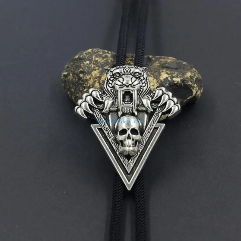 Scopri gli stili occidentali con la nostra Bolo Tie, presentava uno straordinario design di teschi argentati che trasuda unicità ed eleganza alla moda.