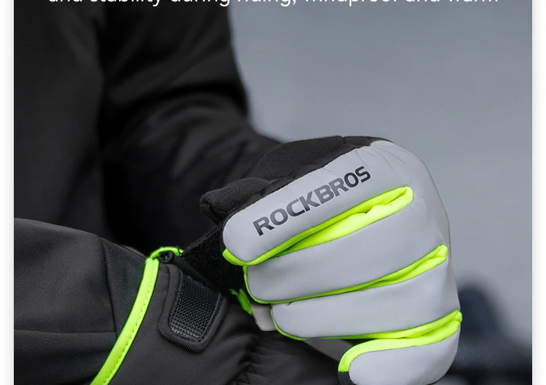 Guanti da ciclismo ROCKBROS Guanti antivento resistenti all’usura antiscivolo Guanti da bici riflettenti per equitazione all’aperto Mantieni caldo il touch screen