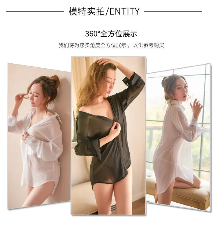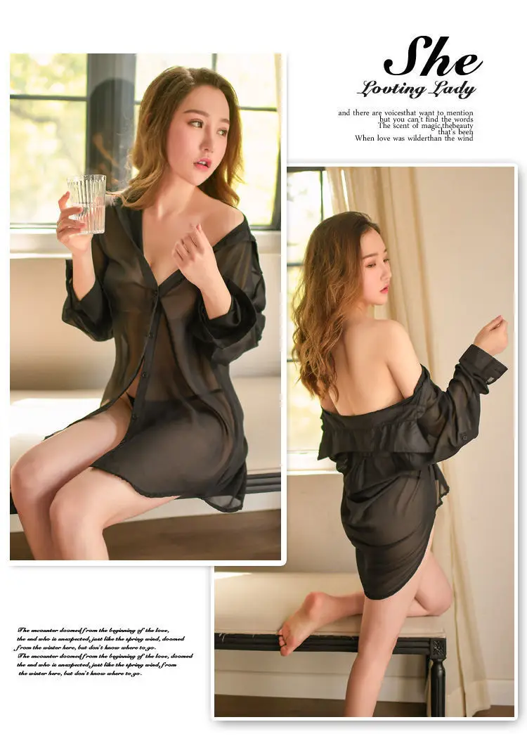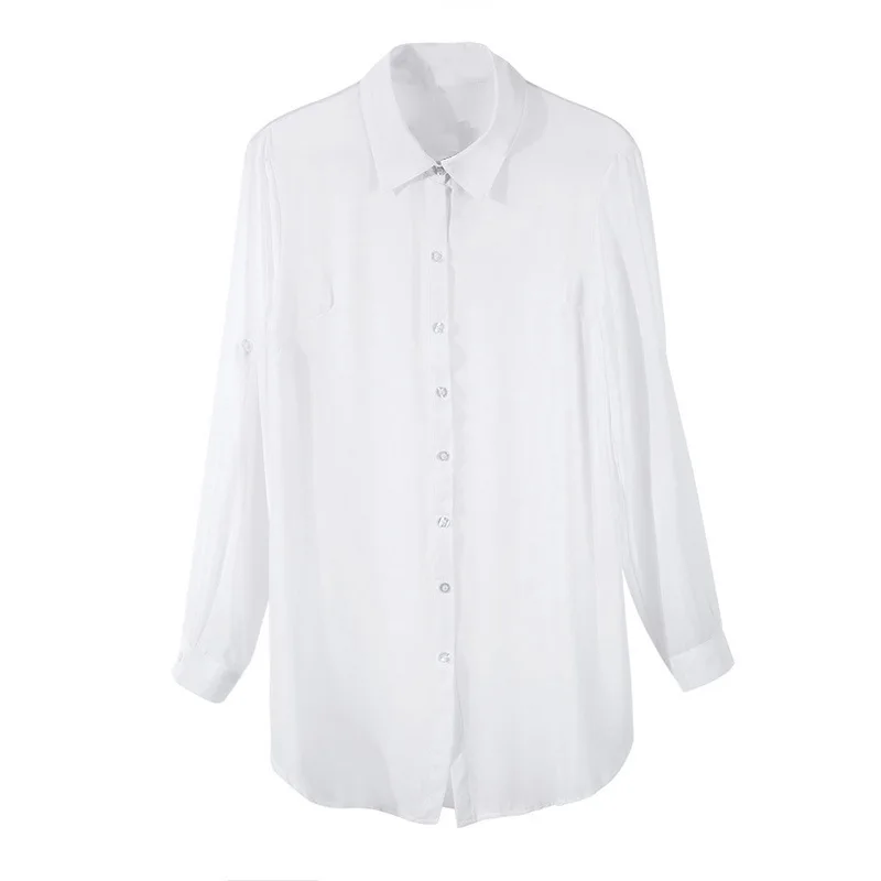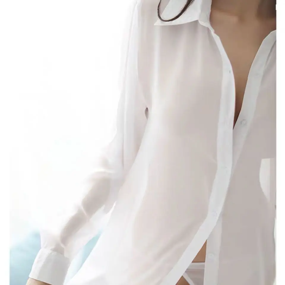 Camicette in chiffon super sottili da donna Camicia trasparente sexy Camicetta a maniche lunghe bianca nera Camicia da notte casual per la casa Primavera Estate 5XL