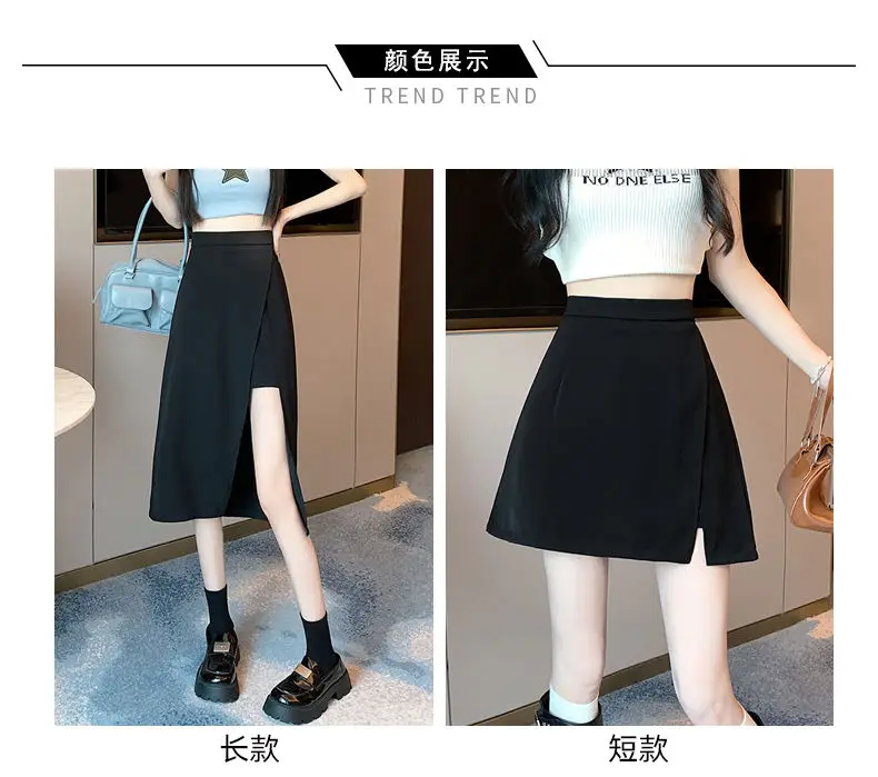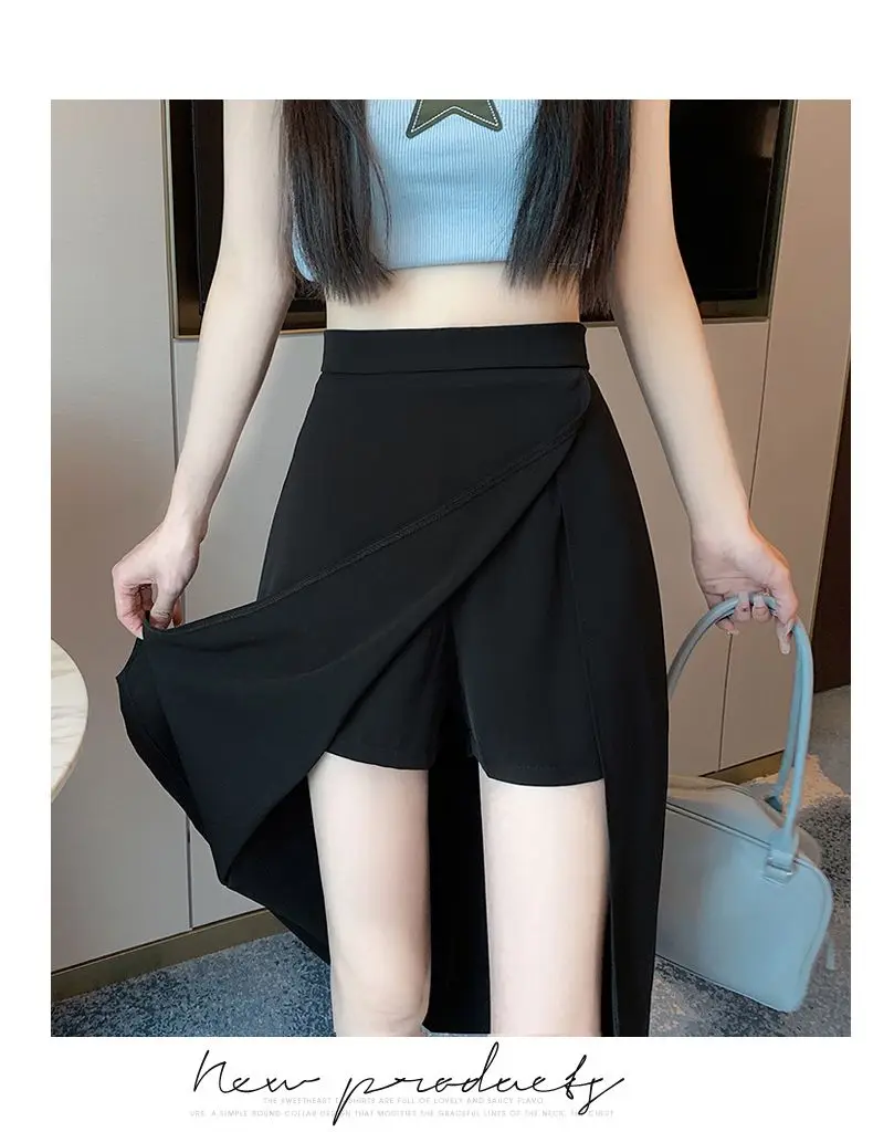 Gonna primavera ed estate 2025 da donna con gonna pantalone a trapezio nera a vita alta con spacco irregolare 1Gonna primavera ed estate 2025 da donna con gonna pantalone a trapezio nera a vita alta con spacco irregolare