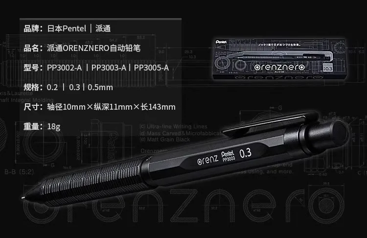 Pentel Orenz Nero PP3002/3003/3005-A Matita meccanica cancelleria giapponese originale ad alta qualità