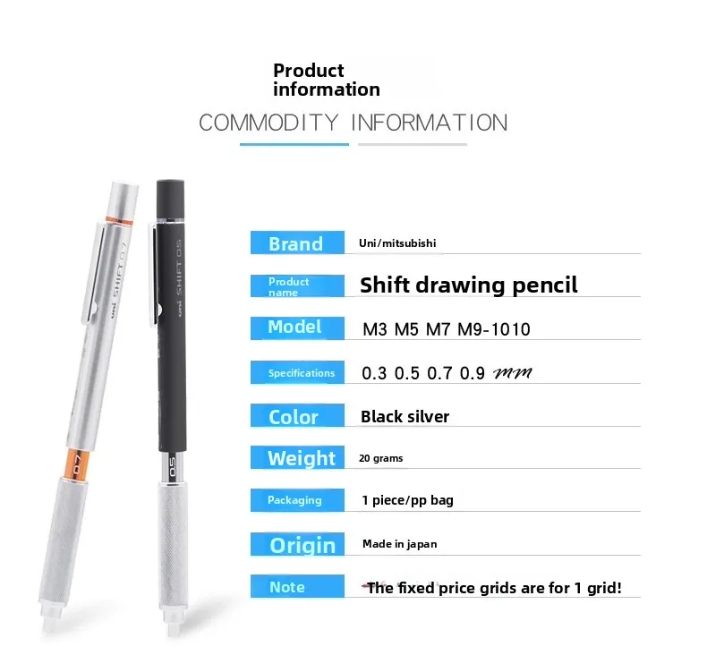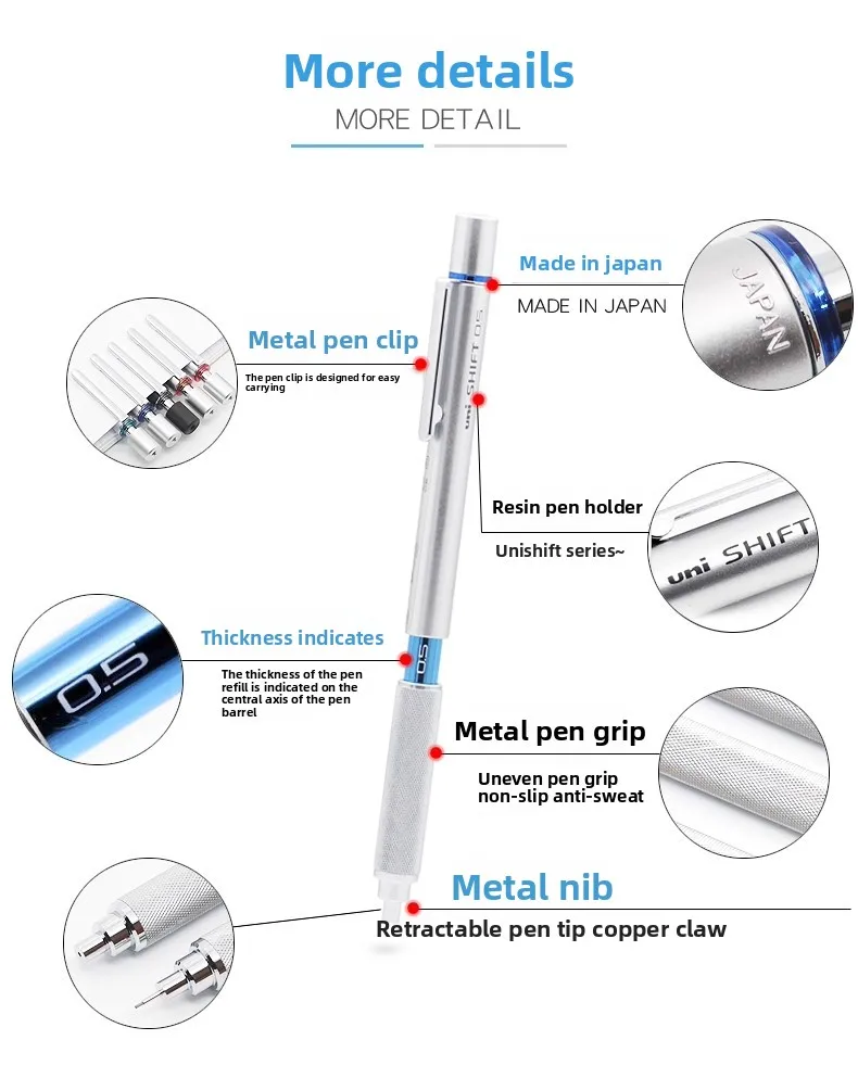 Uni Matita meccanica 1010 0.3/0.5/0.7/0.9mm Disegno in metallo lapiseira professionale basso centro di gravità arte schizzo matita art