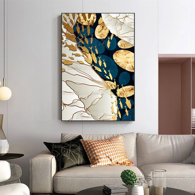 Modern Abstract Poster Golden Fish Picture Wall Art Canvas Painting Animal Poster per la decorazione domestica pittura murale senza cornice, a causa di motivi di stampa, c’ è una leggera differenza di colore tra l’immagine reale e l’immagine del venditore, ma non influenza l’aspetto, si prega di stare in guardia.
