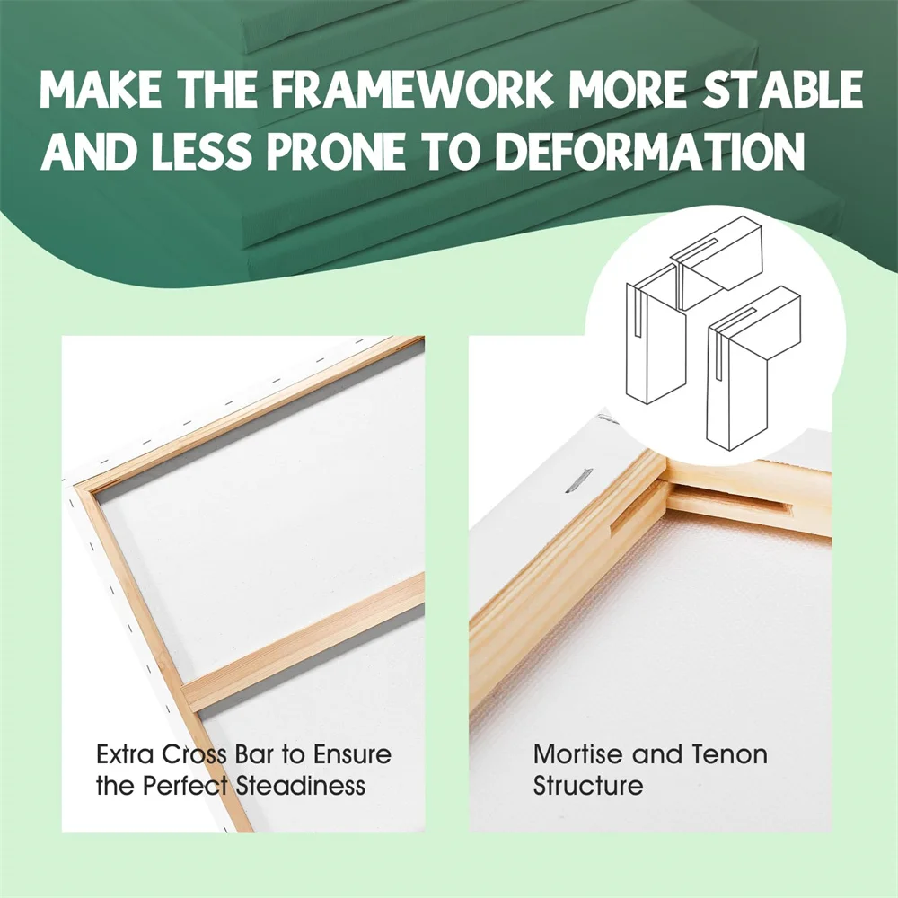 【BARRE STRETTI IN LEGNO DI ROSSO】 Queste tele tese sono tese e pinzate su barre di pino che creano una struttura solida.Sono strettamente allungati attorno alle barre di legno per un bordo impeccabile, ideale per incorniciare o appendere al muro.Nel frattempo, i nostri materiali per la pittura su tela offrono un’ottima qualità a un prezzo eccezionale e conveniente