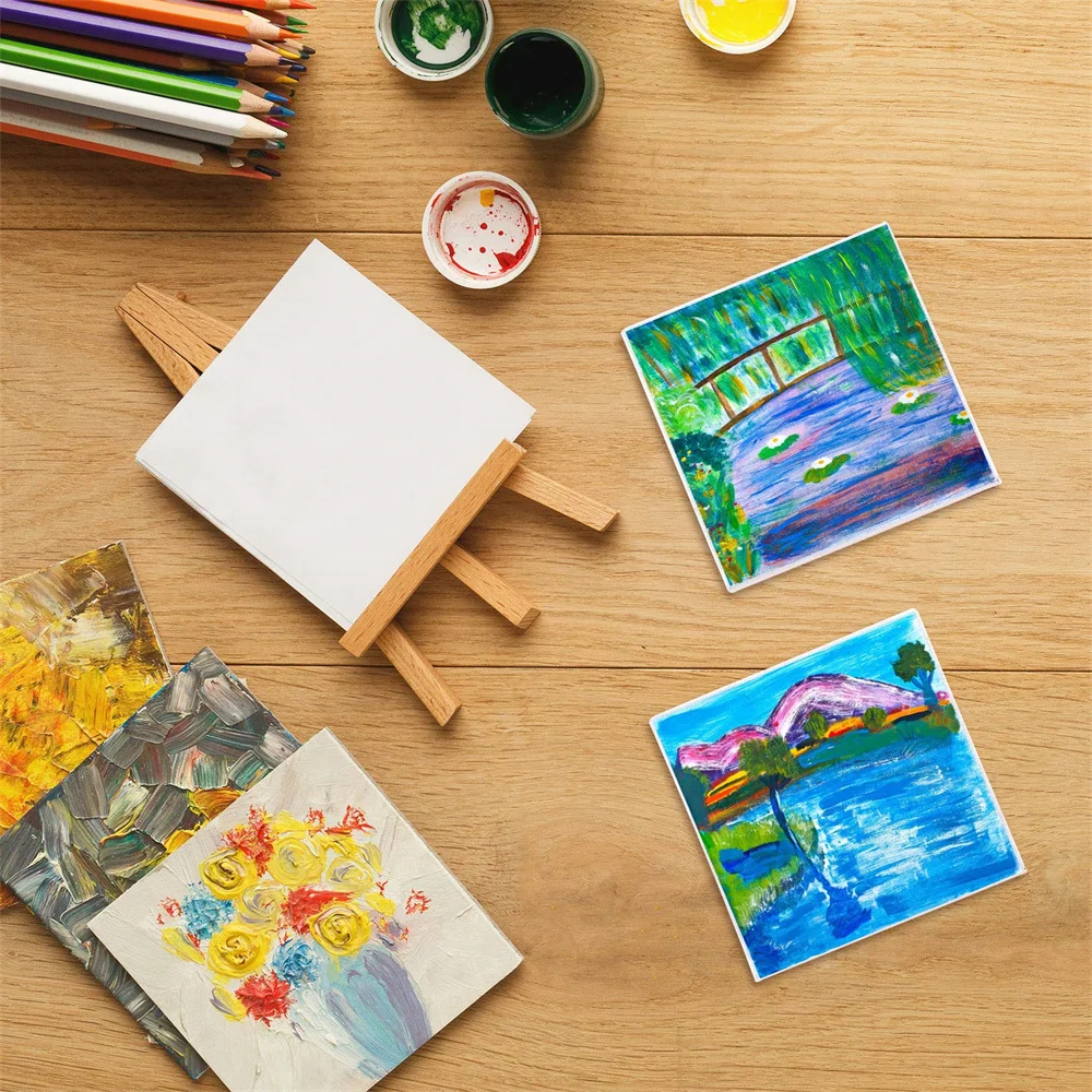 8 pezzi tela pittura cotone vuoto, bianco preparato, adatto per pittura a olio, acquerello, gouache, acrilico, materiali artistici, disegno fai da te