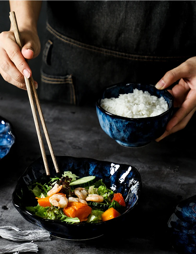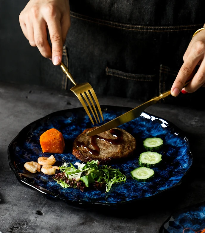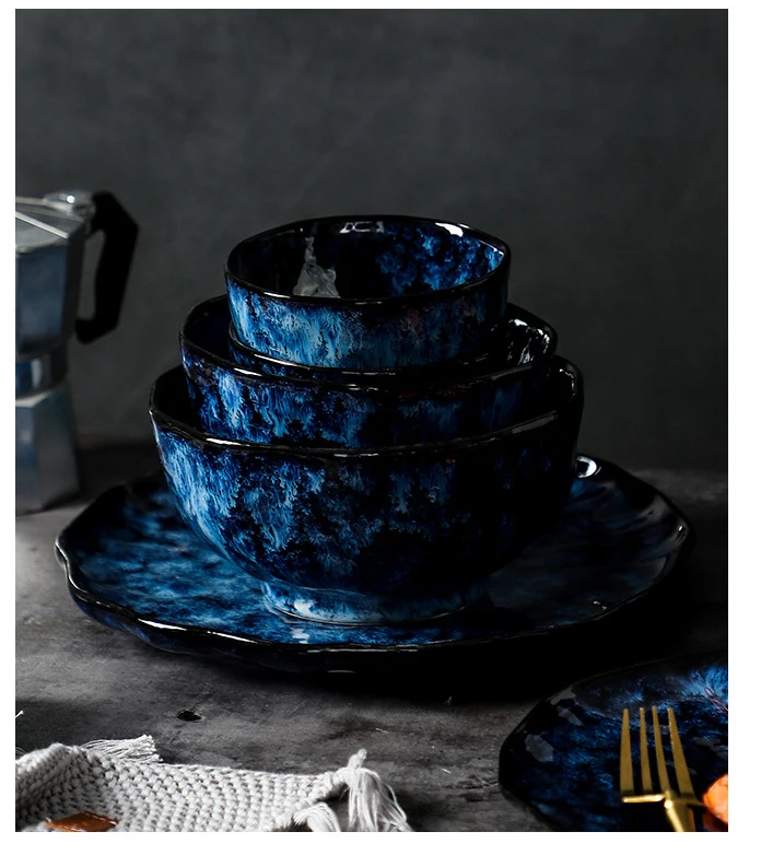 Piatto del corso principale giapponese creativo blu forno smalto Set di stoviglie insalatiera ristorante casa piatto di Pasta stoviglie in ceramica dell’hotel