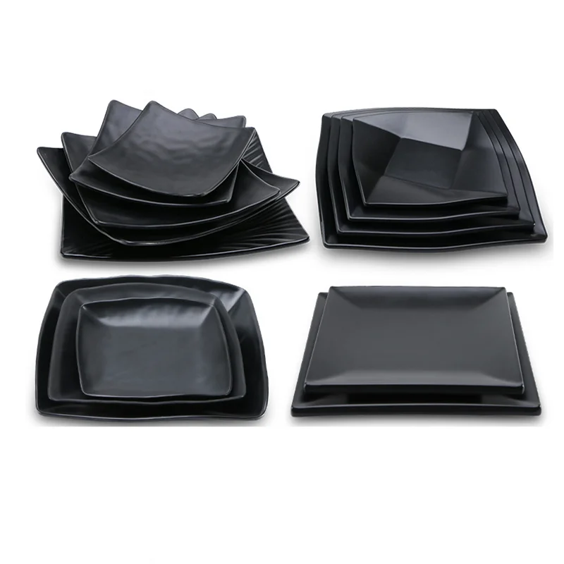 Piatto nero opaco stoviglie in melamina piatto Snack piatto quadrato in plastica forniture da cucina piatti laterali girarrosto commerciale