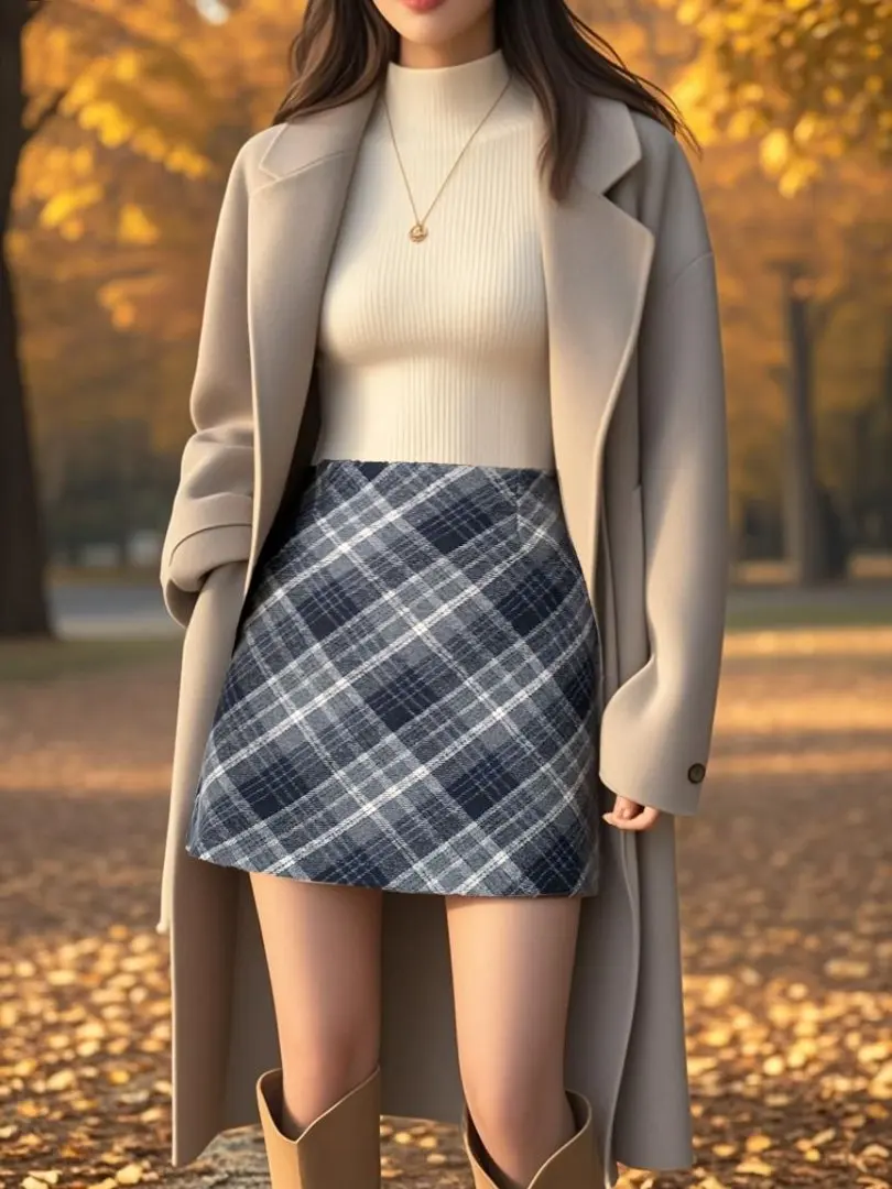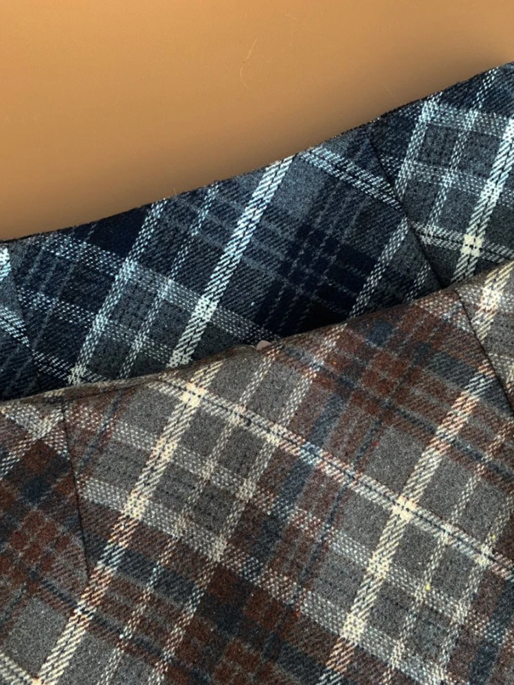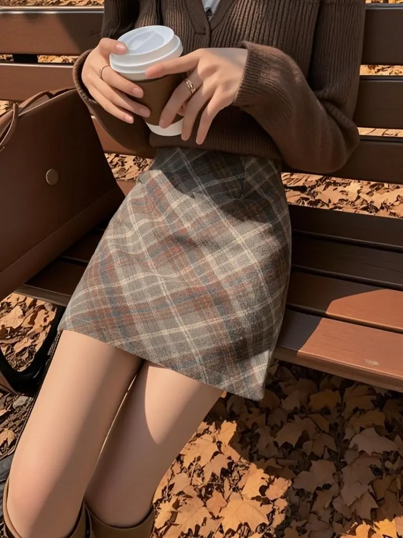 Gonna a trapezio corta vintage scozzese stile coreano per donna Autunno Inverno Streetwear Gonne a tubino di lana sottili Donna
