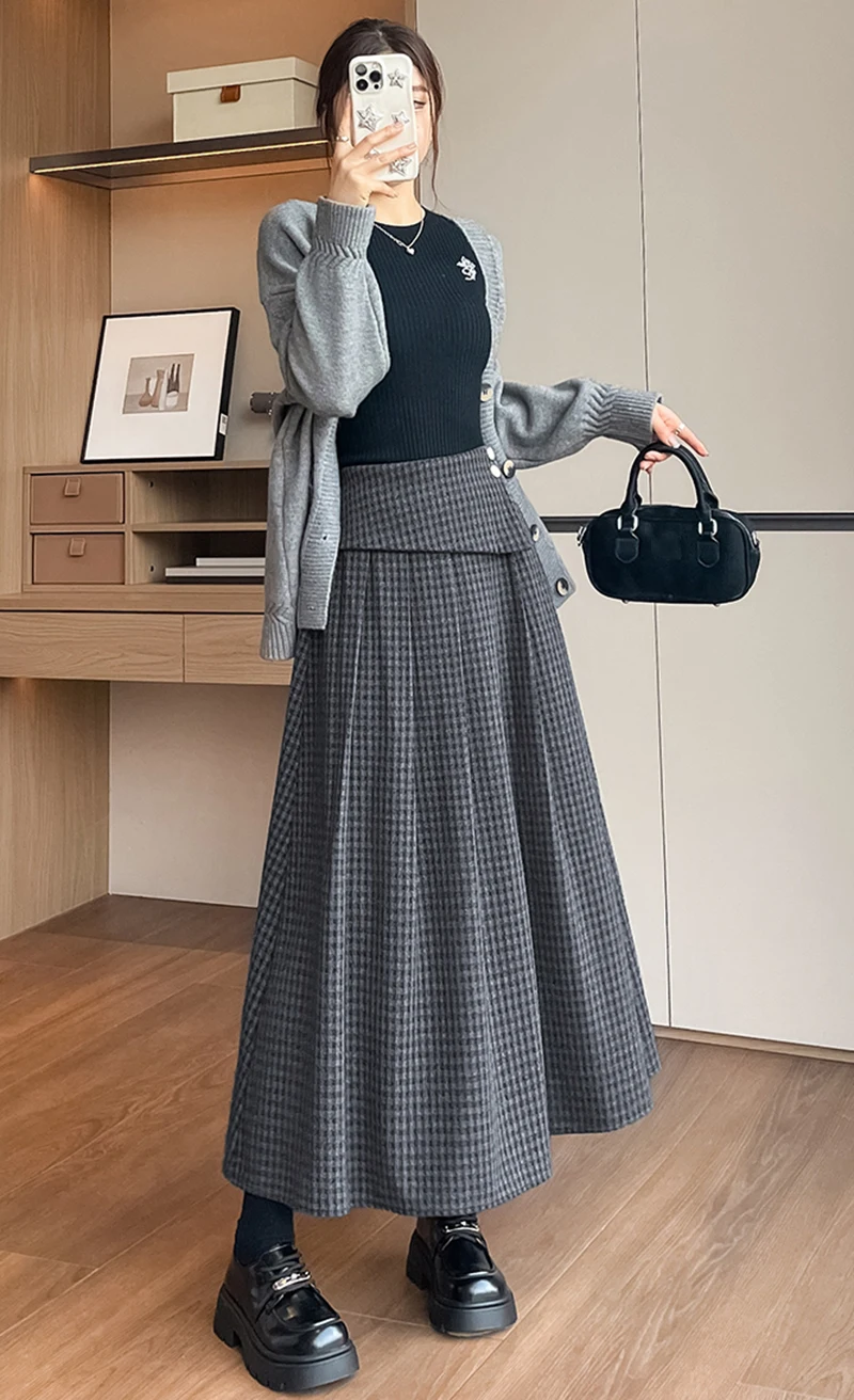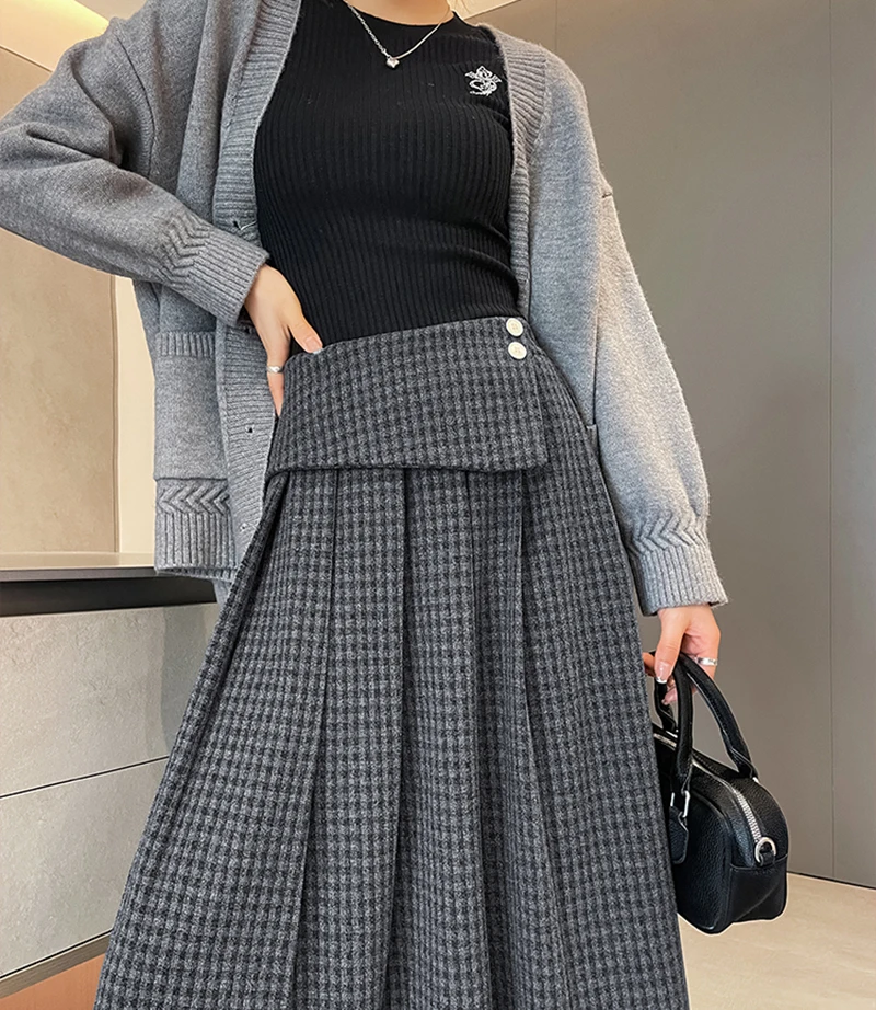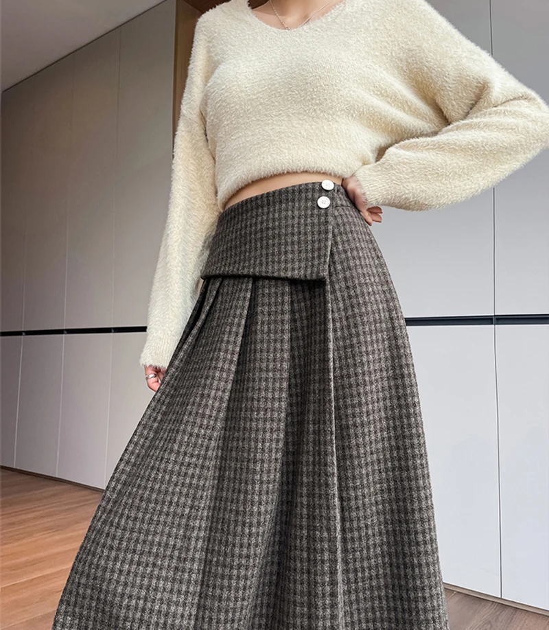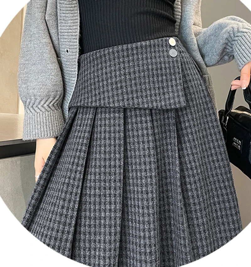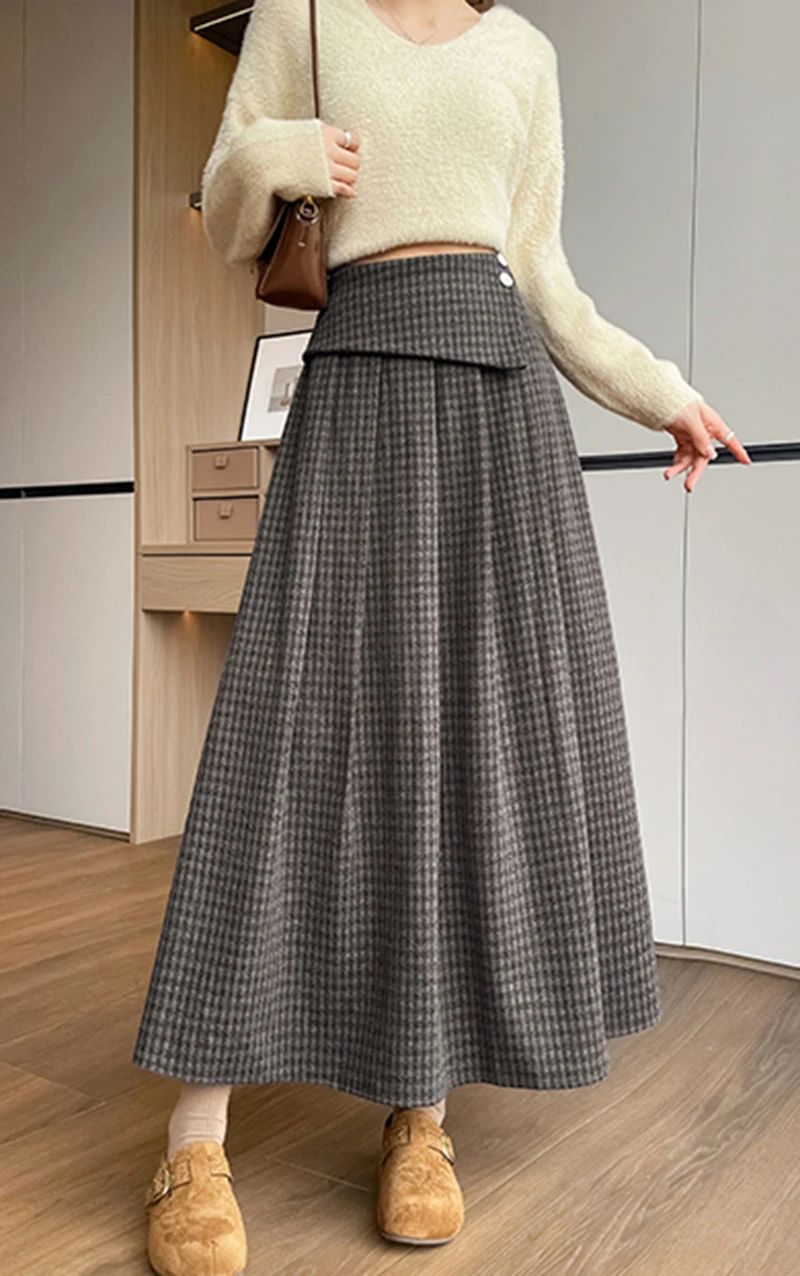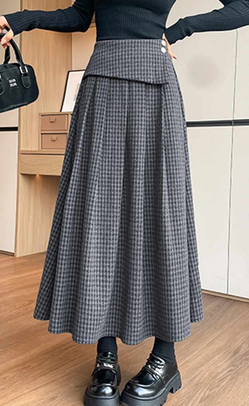 Gonna longuette scozzese autunno inverno da donna in finta lana elegante stile Perppy gonna a pieghe sottile linea A gonna classica Harajuku Y2K vintage
