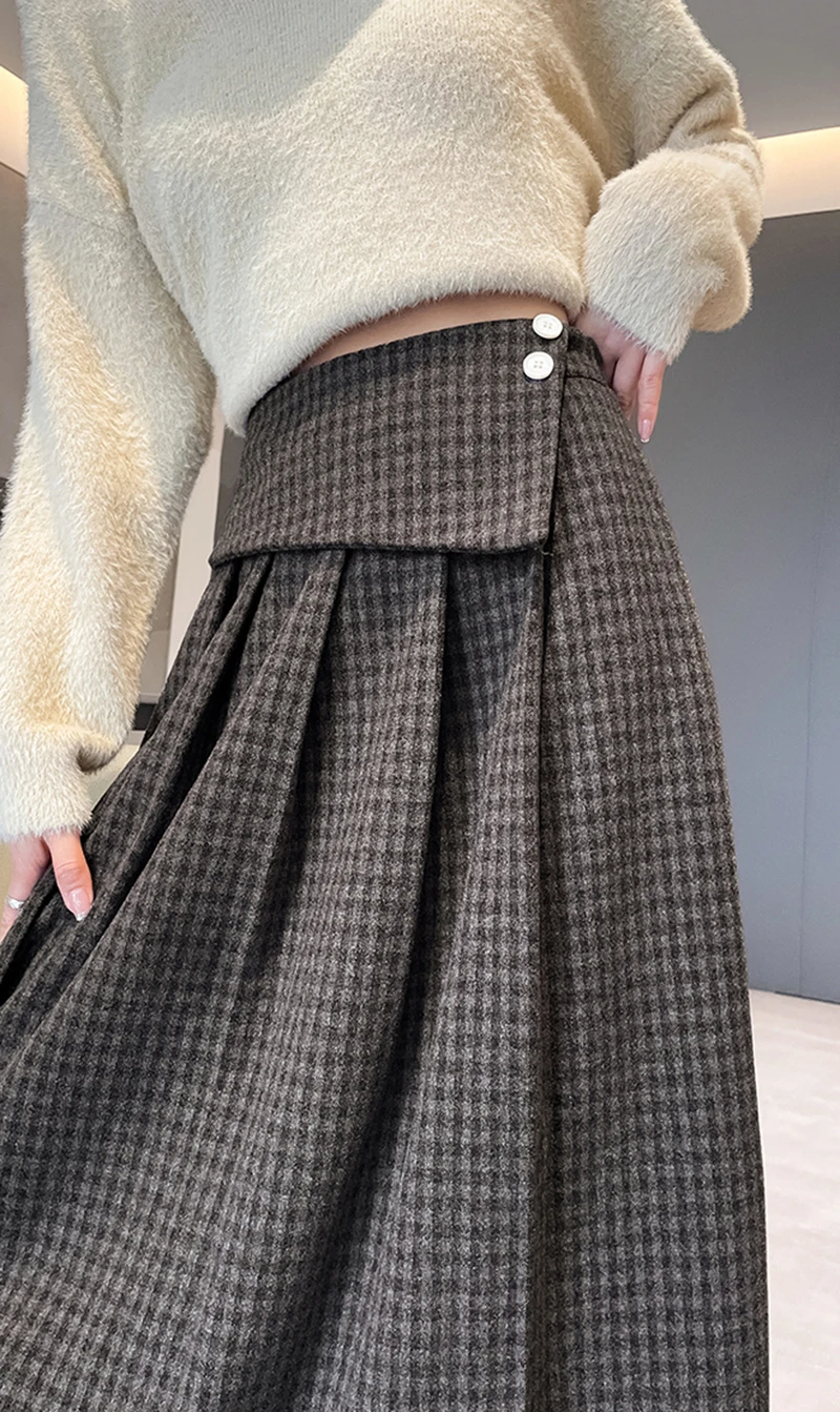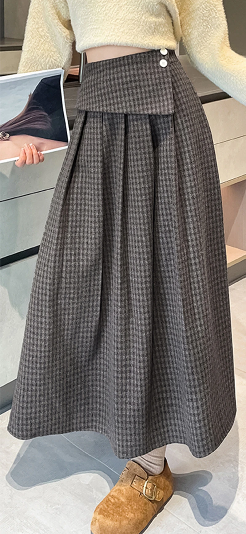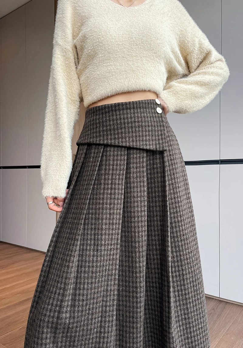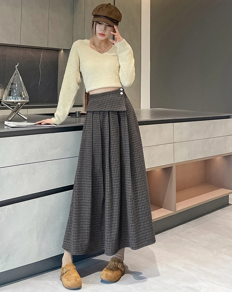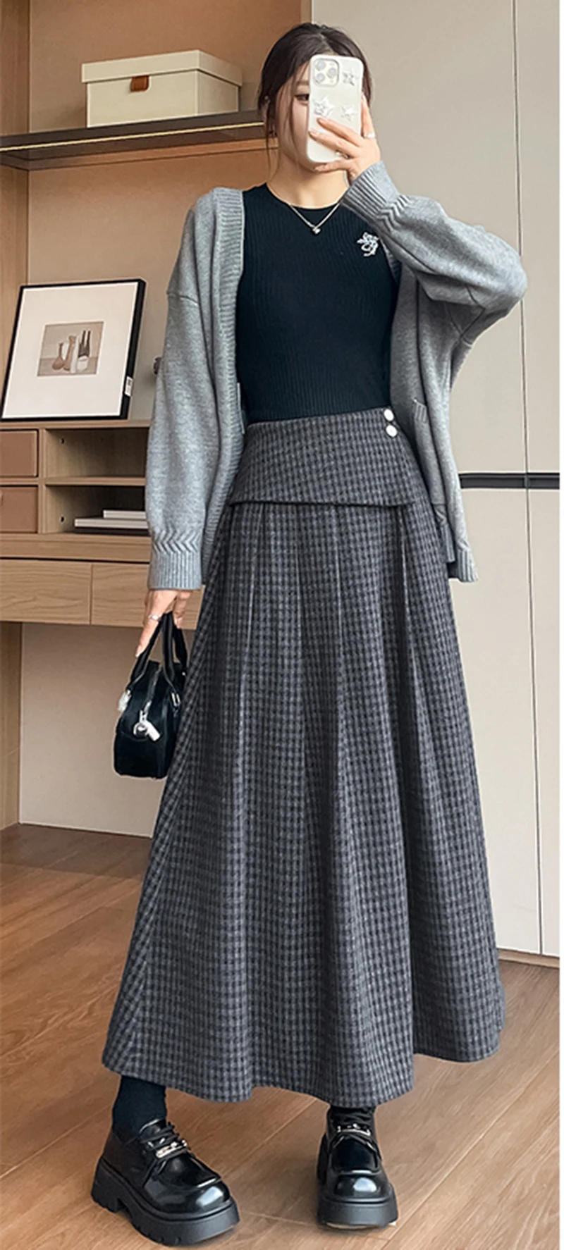 Gonna longuette scozzese autunno inverno da donna in finta lana elegante stile Perppy gonna a pieghe sottile linea A gonna classica Harajuku Y2K vintage