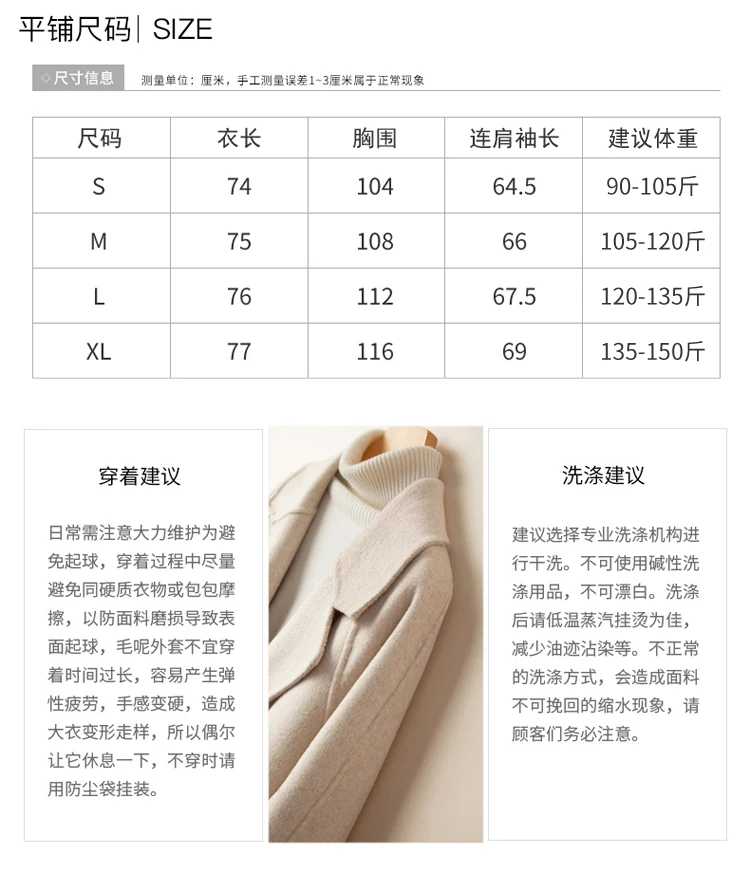 M: busto 108 cm, lunghezza del cappotto 75 cm, lunghezza della manica 66 cm, larghezza della spalla/cm, peso consigliato 52,5 kg-60 kg.