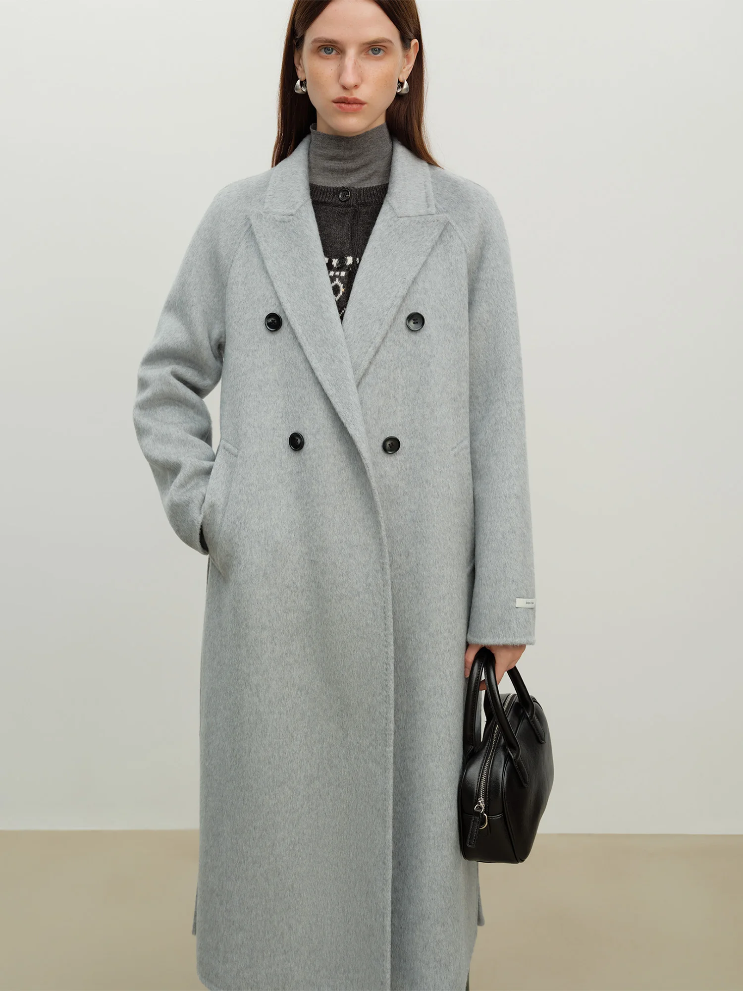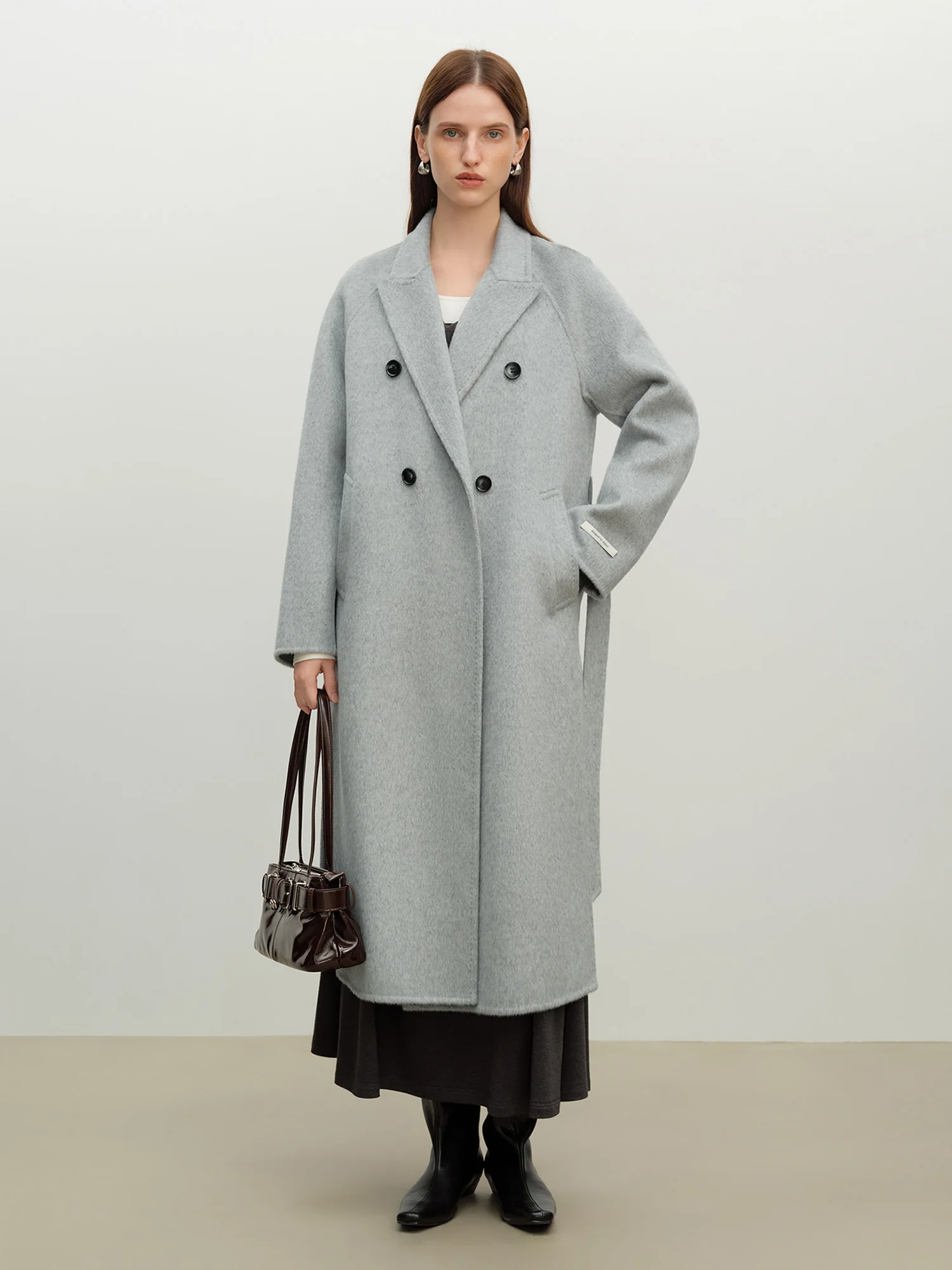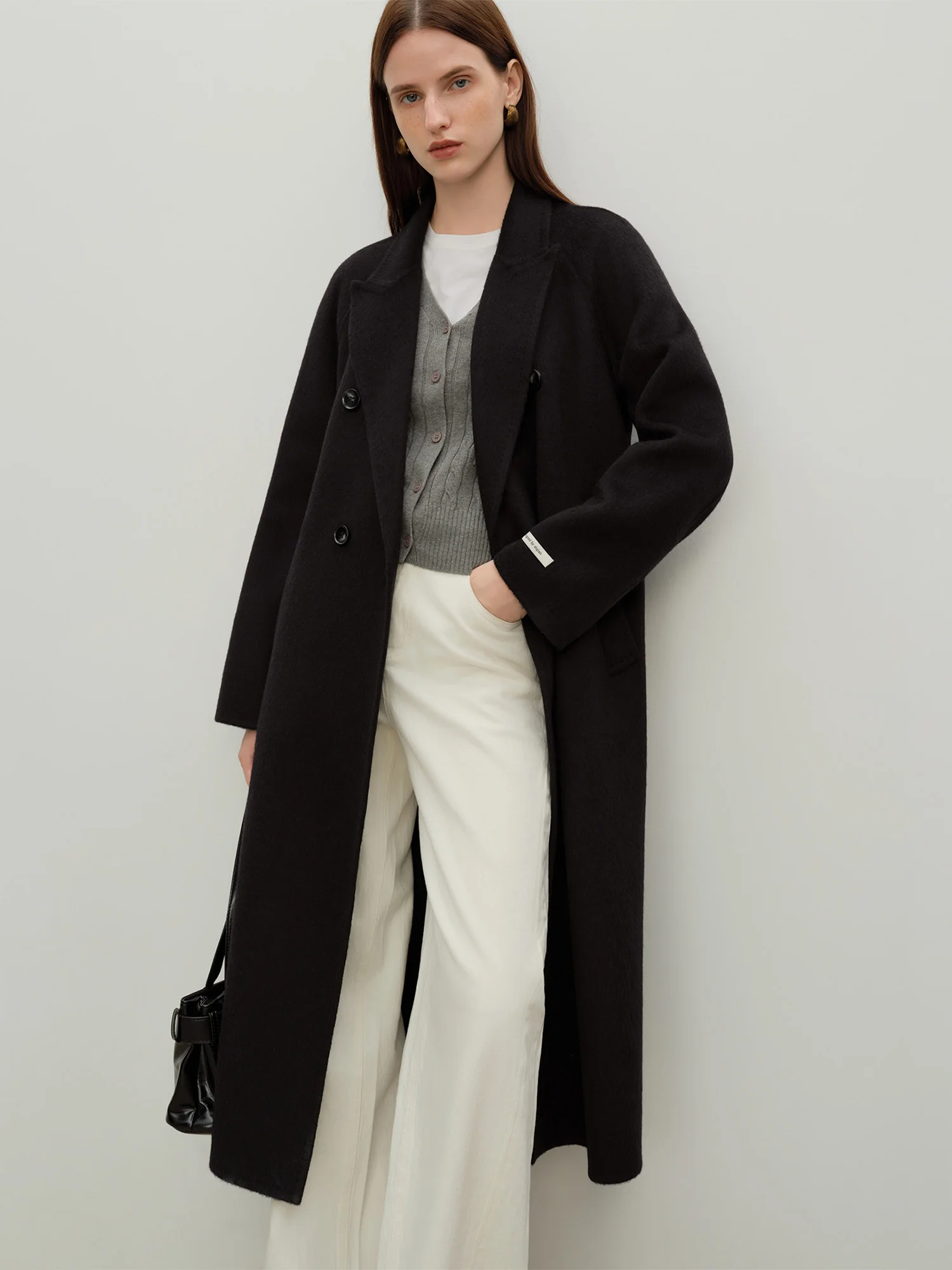 ZIQIAO 2025 Cappotto lungo da donna invernale in misto lana con risvolto con tacca – Elegante cappotto stile trench per abbigliamento casual e da ufficio