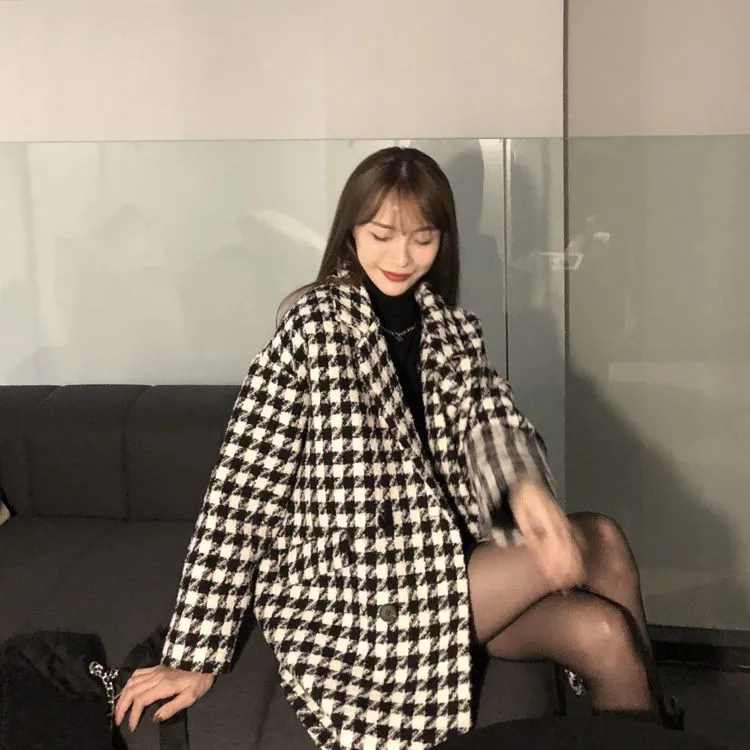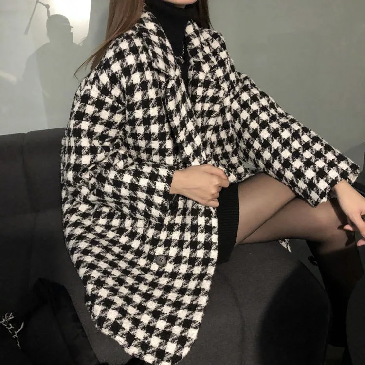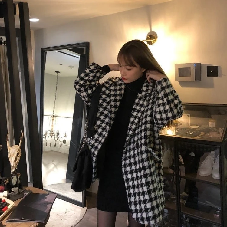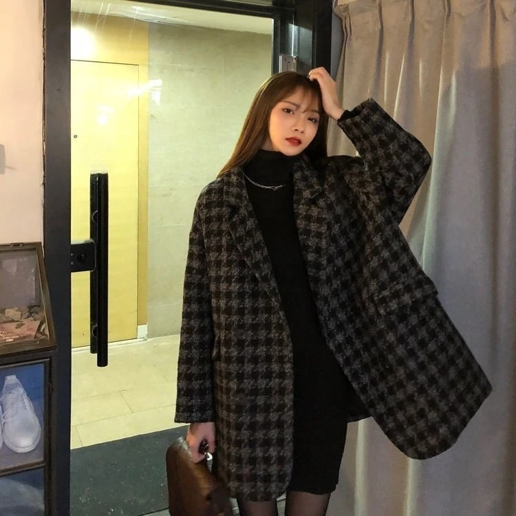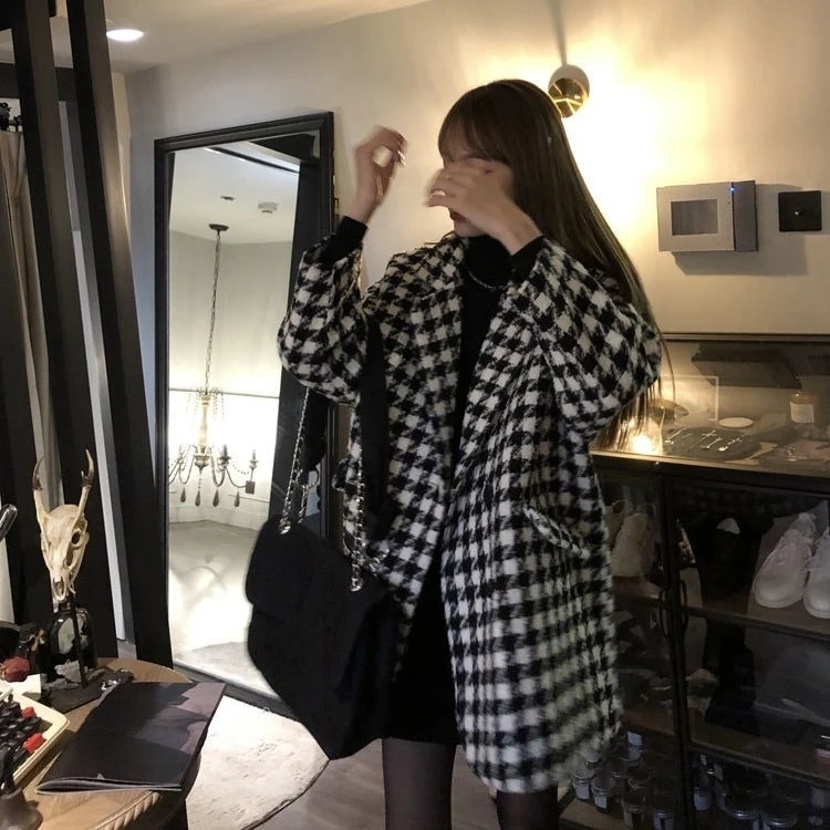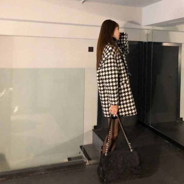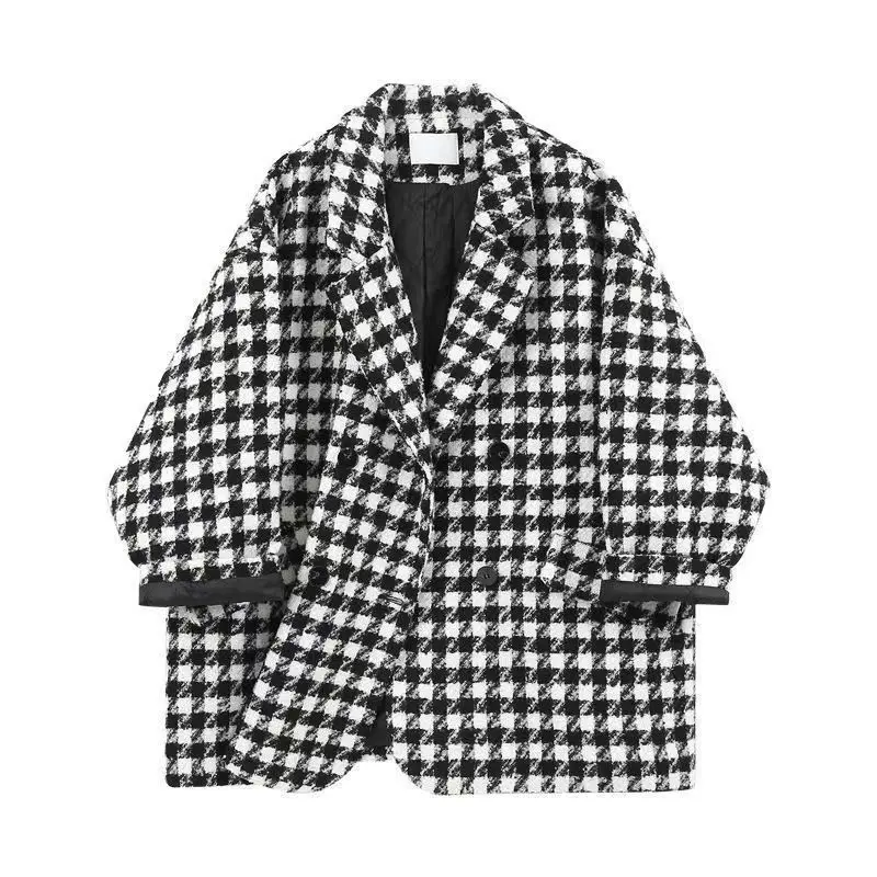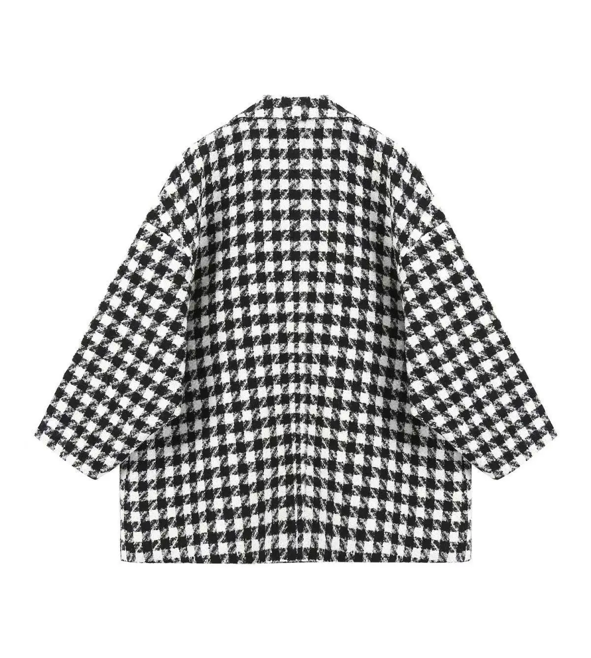 Cappotto di lana scozzese caldo taglie forti da donna Giacca stile trench di media lunghezza trapuntata ispessita vestibilità ampia 2025 Autunno 1Cappotto di lana scozzese caldo taglie forti da donna Giacca stile trench di media lunghezza trapuntata ispessita vestibilità ampia 2025 Autunno