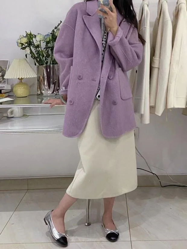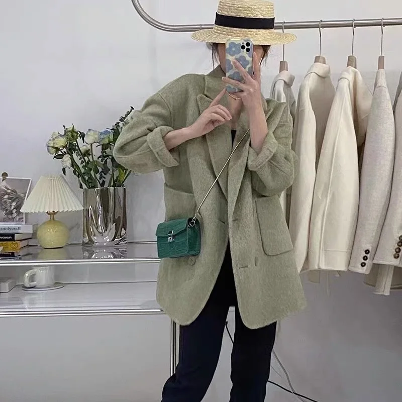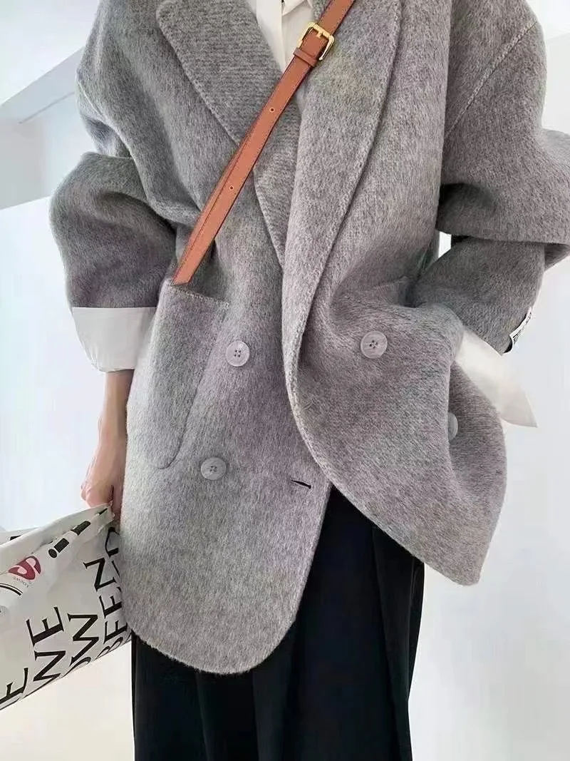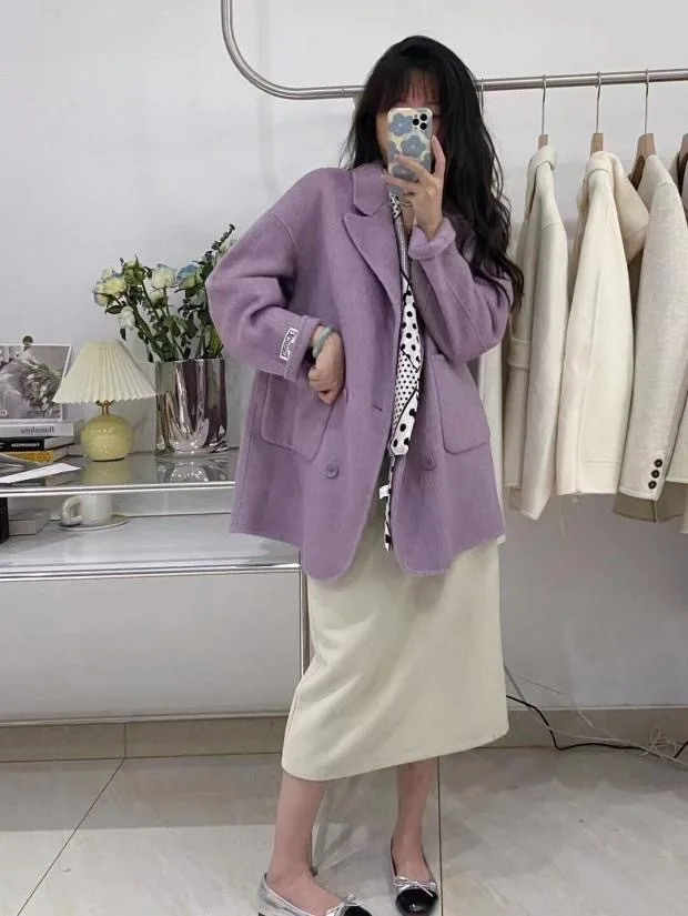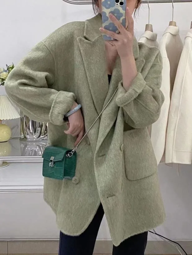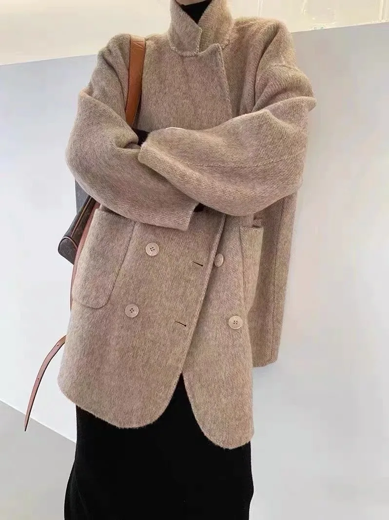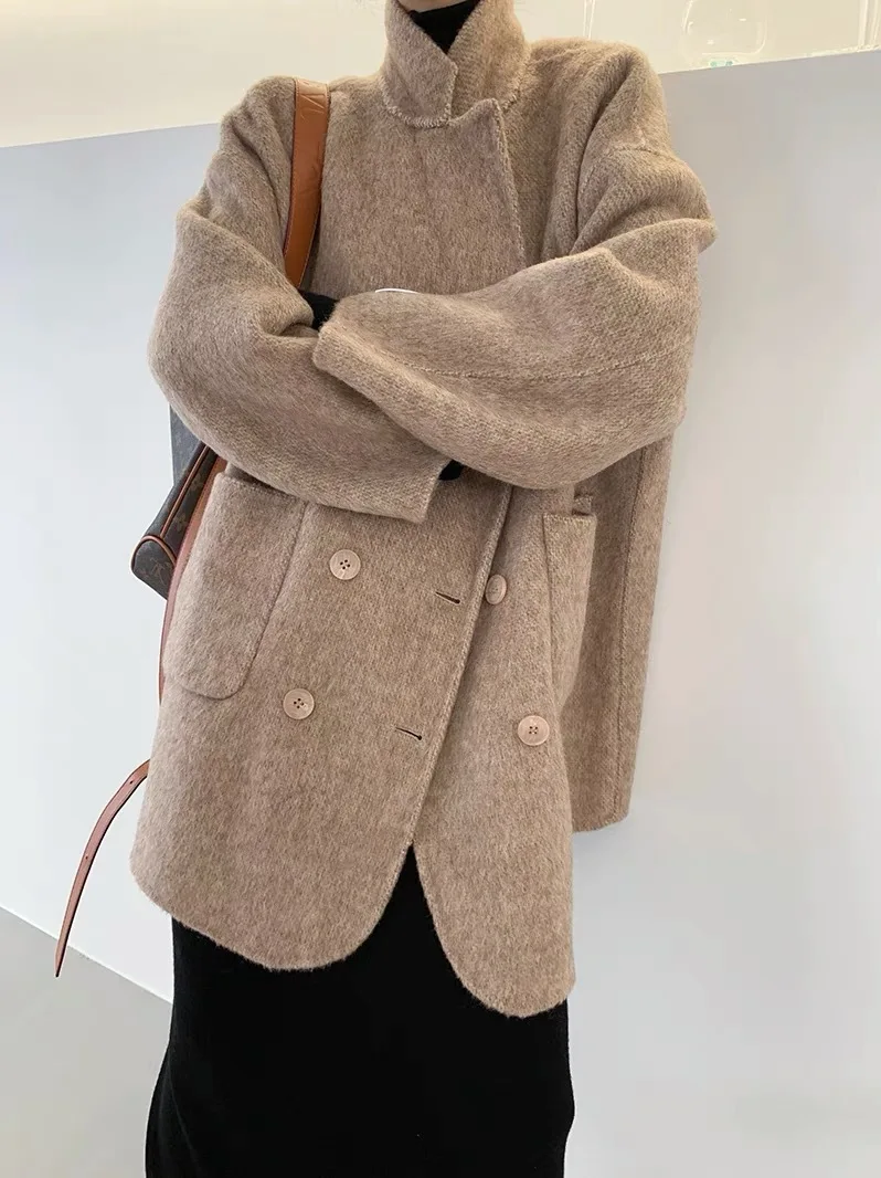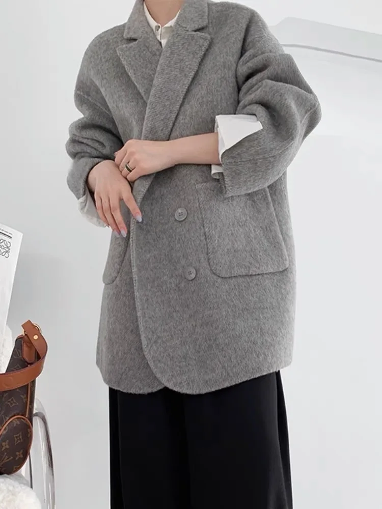 BJTZ Cappotto di lana double face con senso del design di fascia alta per donna Giacca di lana ampia da donna versatile da ufficio