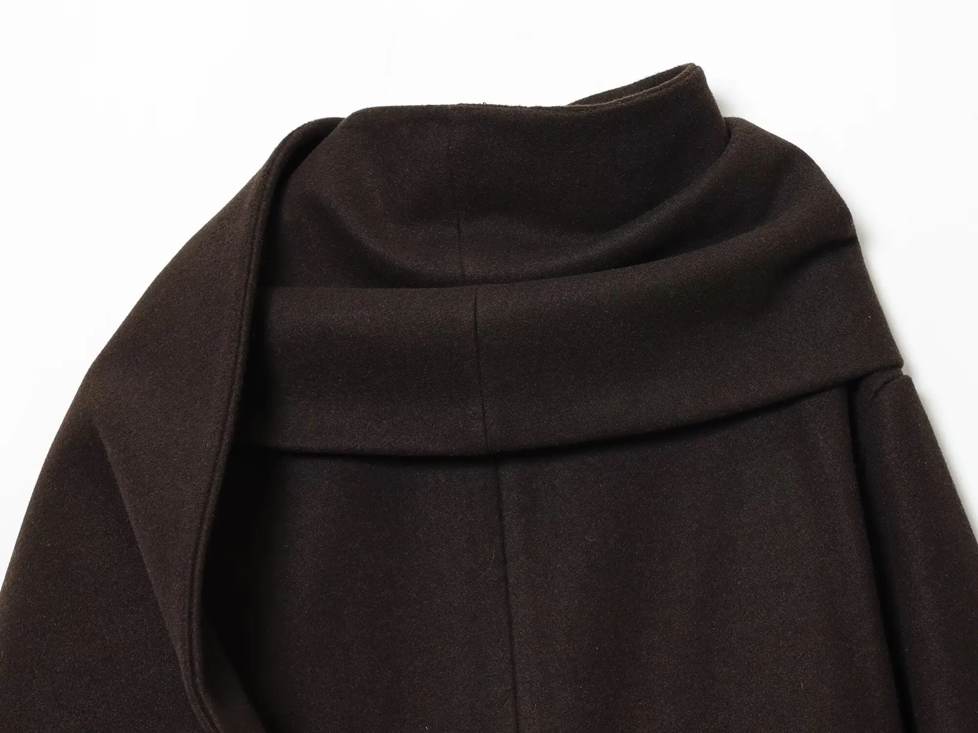 HH Cappotto da donna con colletto a sciarpa vintage moda invernale Cappotto blu scuro stile britannico Giacca da temperamento tascabile casual da strada alta femminile 1HH Cappotto da donna con colletto a sciarpa vintage moda invernale Cappotto blu scuro stile britannico Giacca da temperamento tascabile casual da strada alta femminile