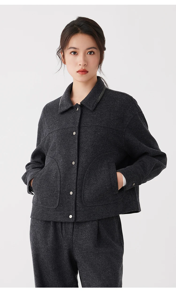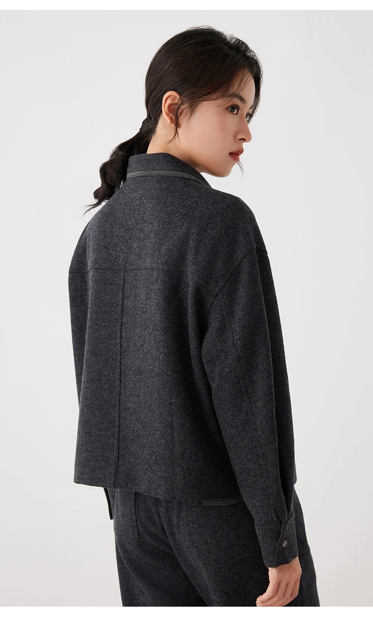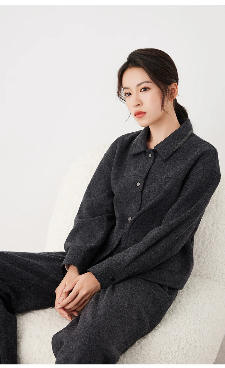 K2684X Cappotto di lana con risvolto in misto lana e cotone, abbigliamento da donna di lusso di alta qualità