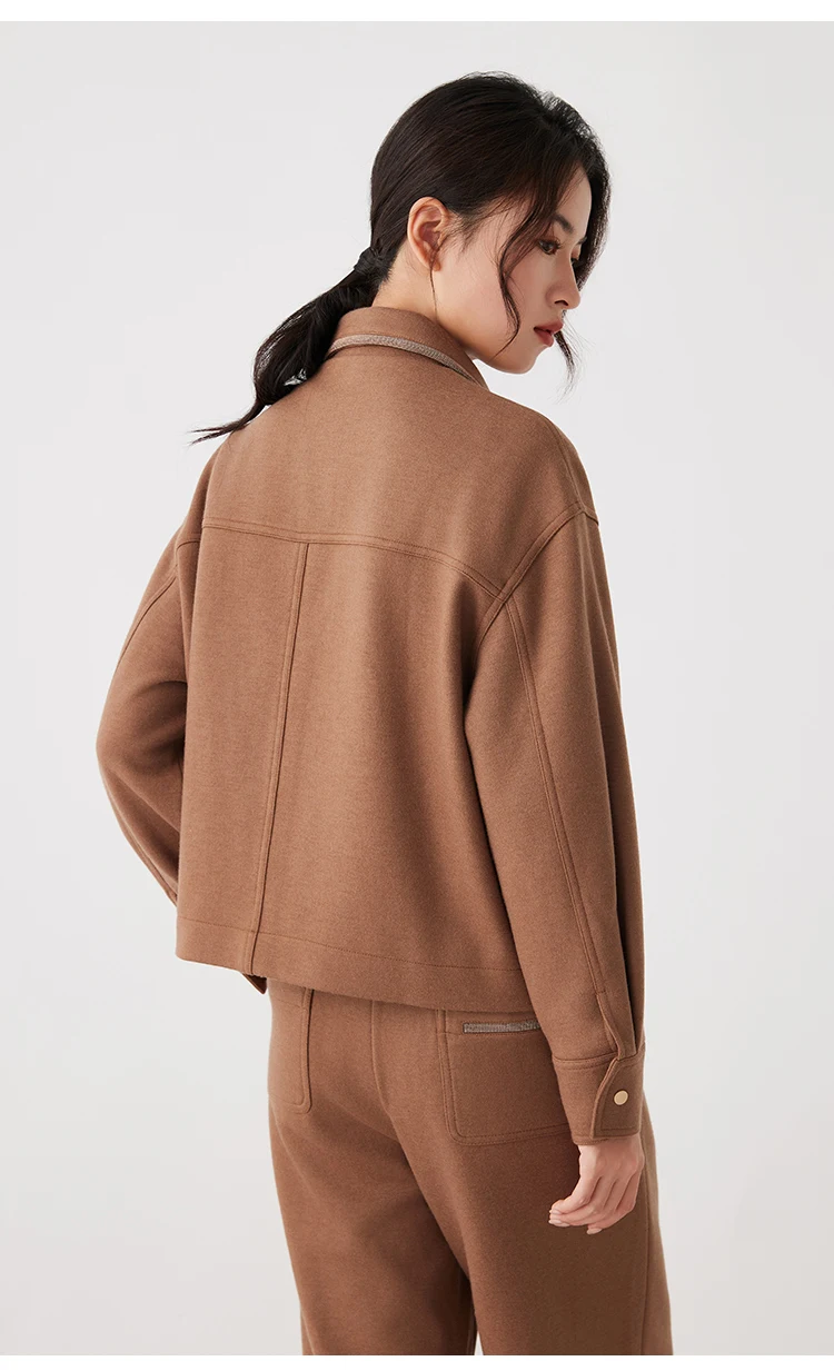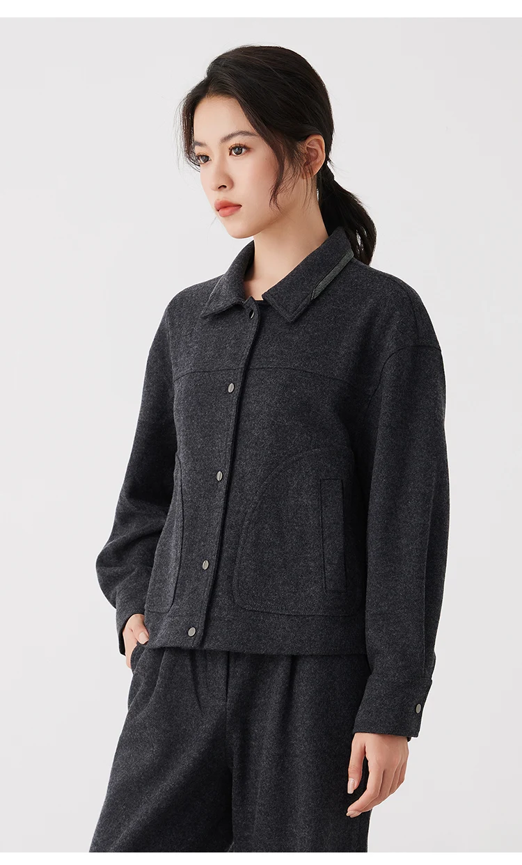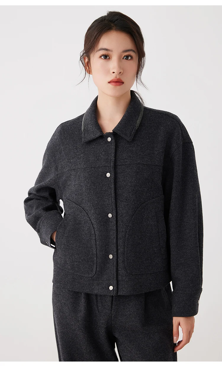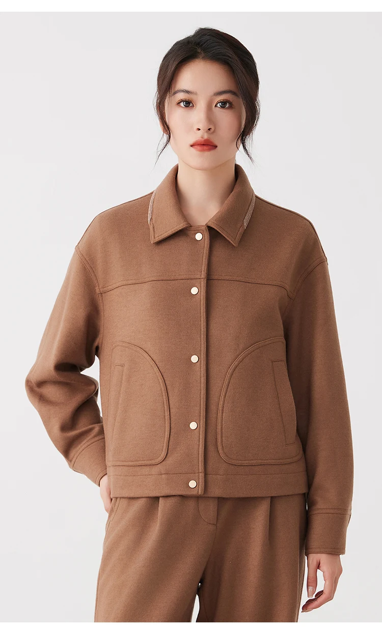 K2684X Cappotto di lana con risvolto in misto lana e cotone, abbigliamento da donna di lusso di alta qualità