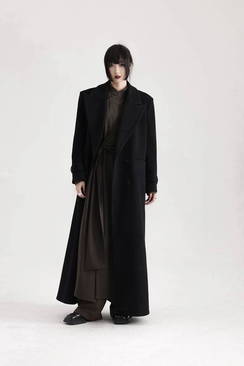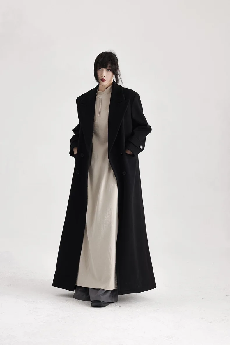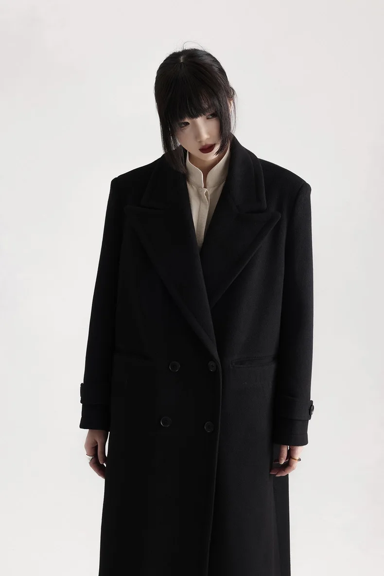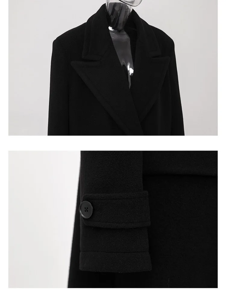 Cappotto di lana da donna autunno inverno 2025 Nuovo stile Nero Cappotto di lana allentato ispessito di alta qualità Cappotto di lana da donna casual H645