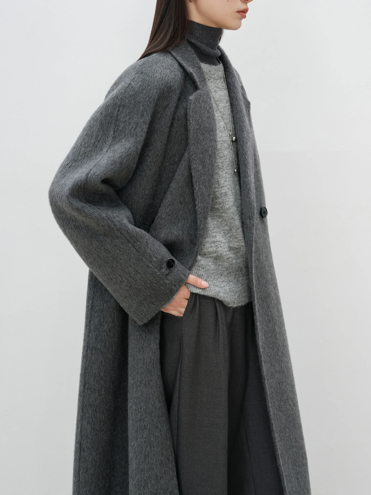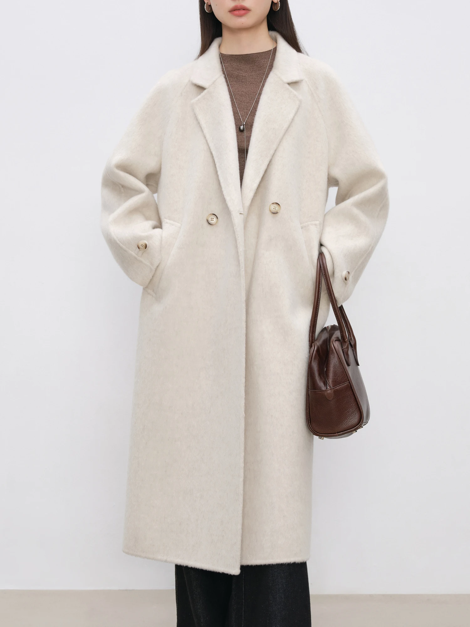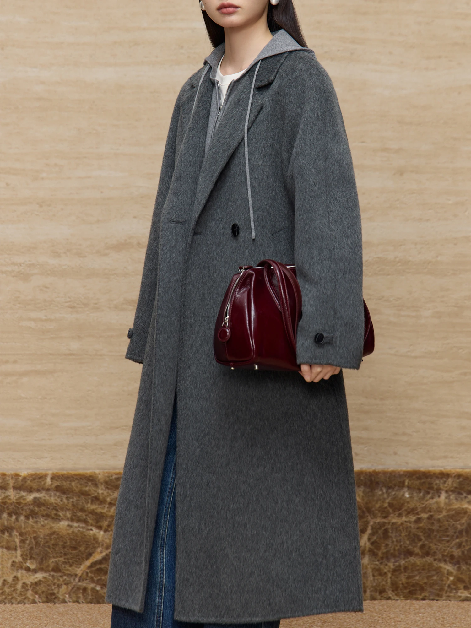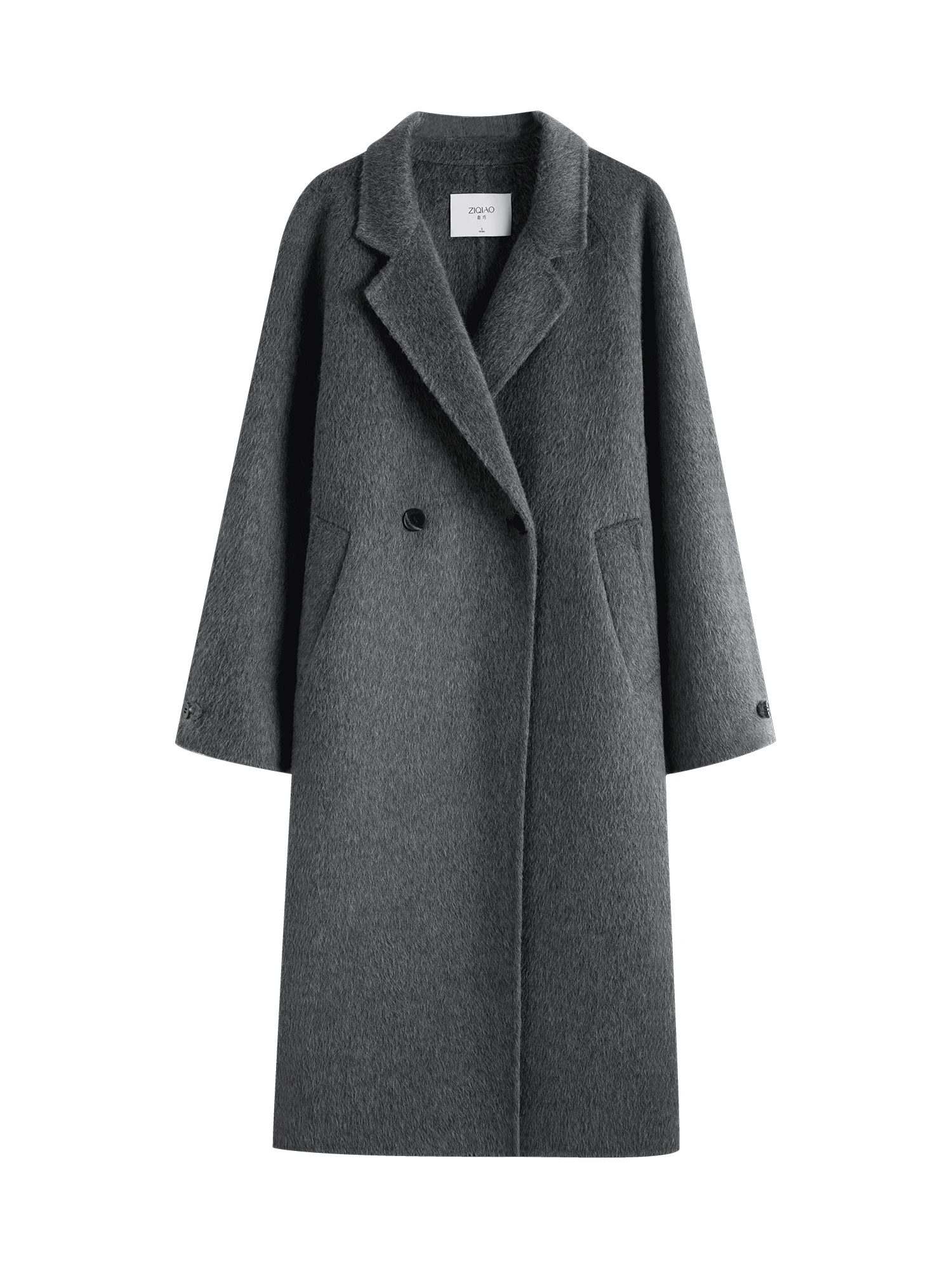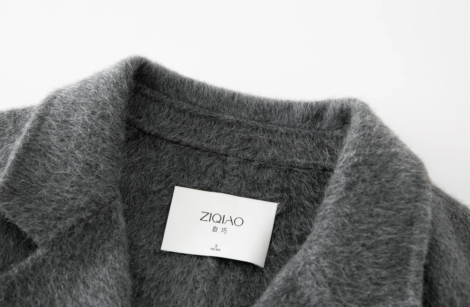 ZIQIAO 91.5% Lana Petite Size Cappotto in doppio cashmere per le donne 2024 Inverno Nuovo design Cappotto caldo chic in lana grigio cammello 24ZQ94128