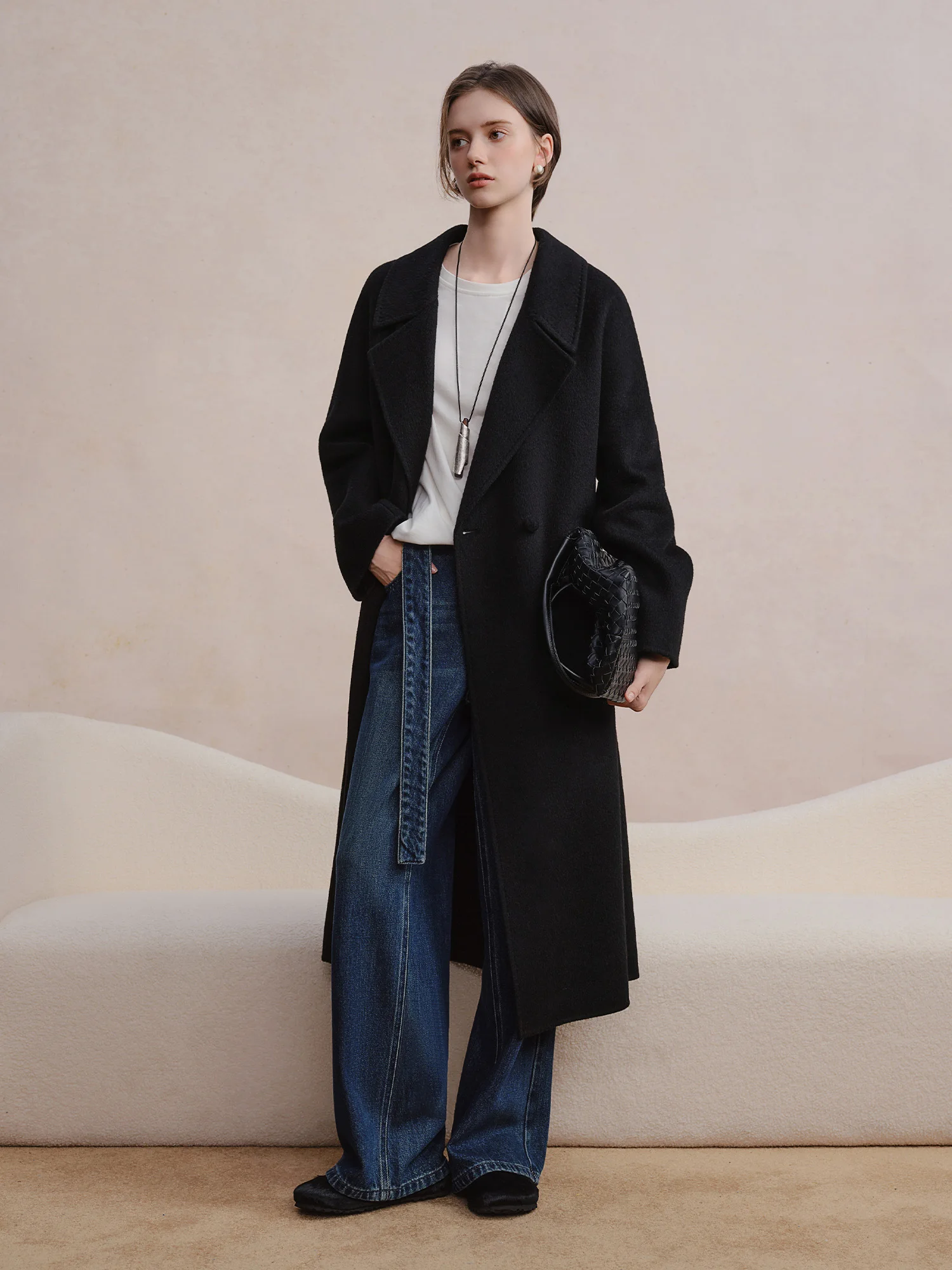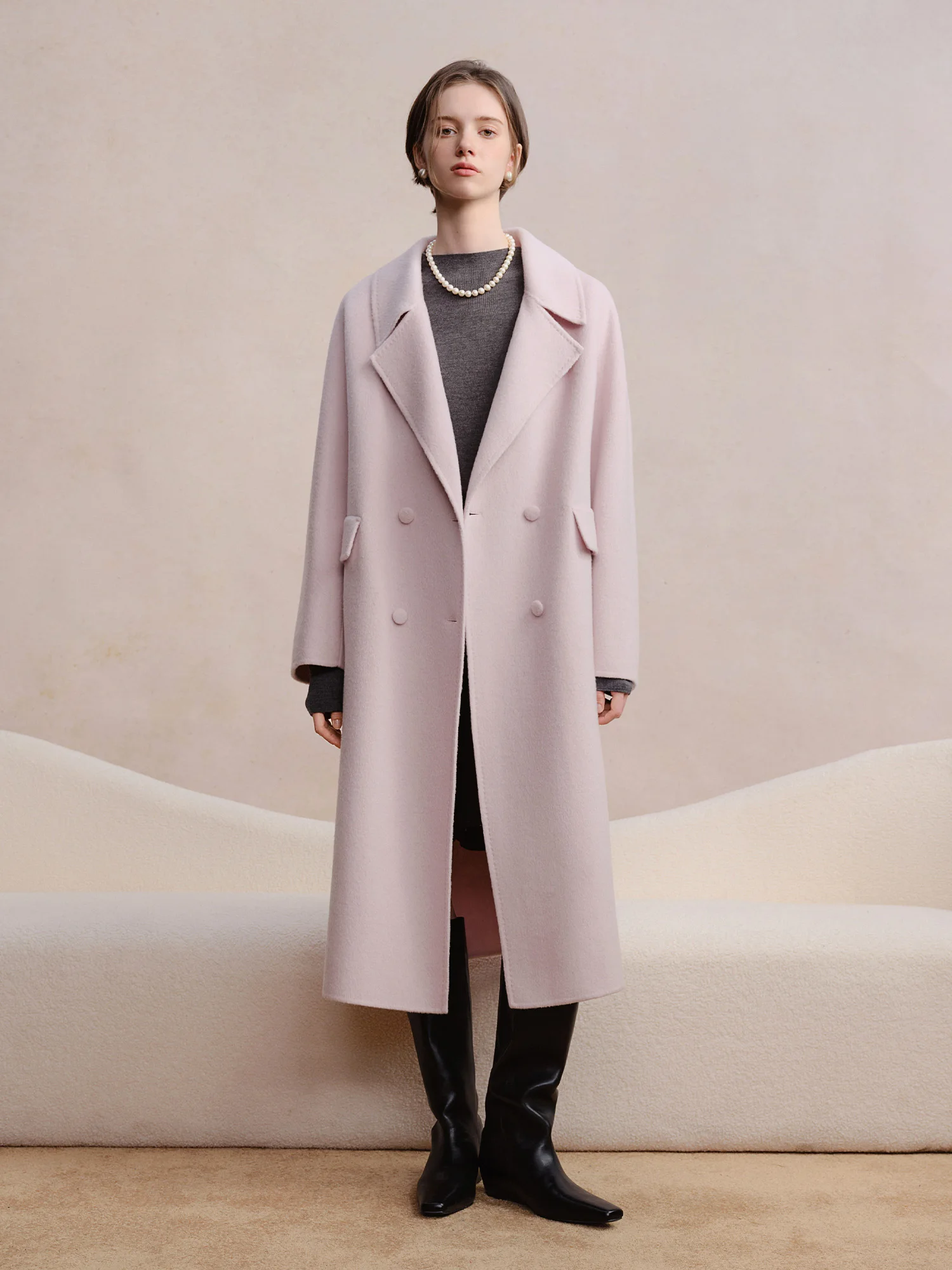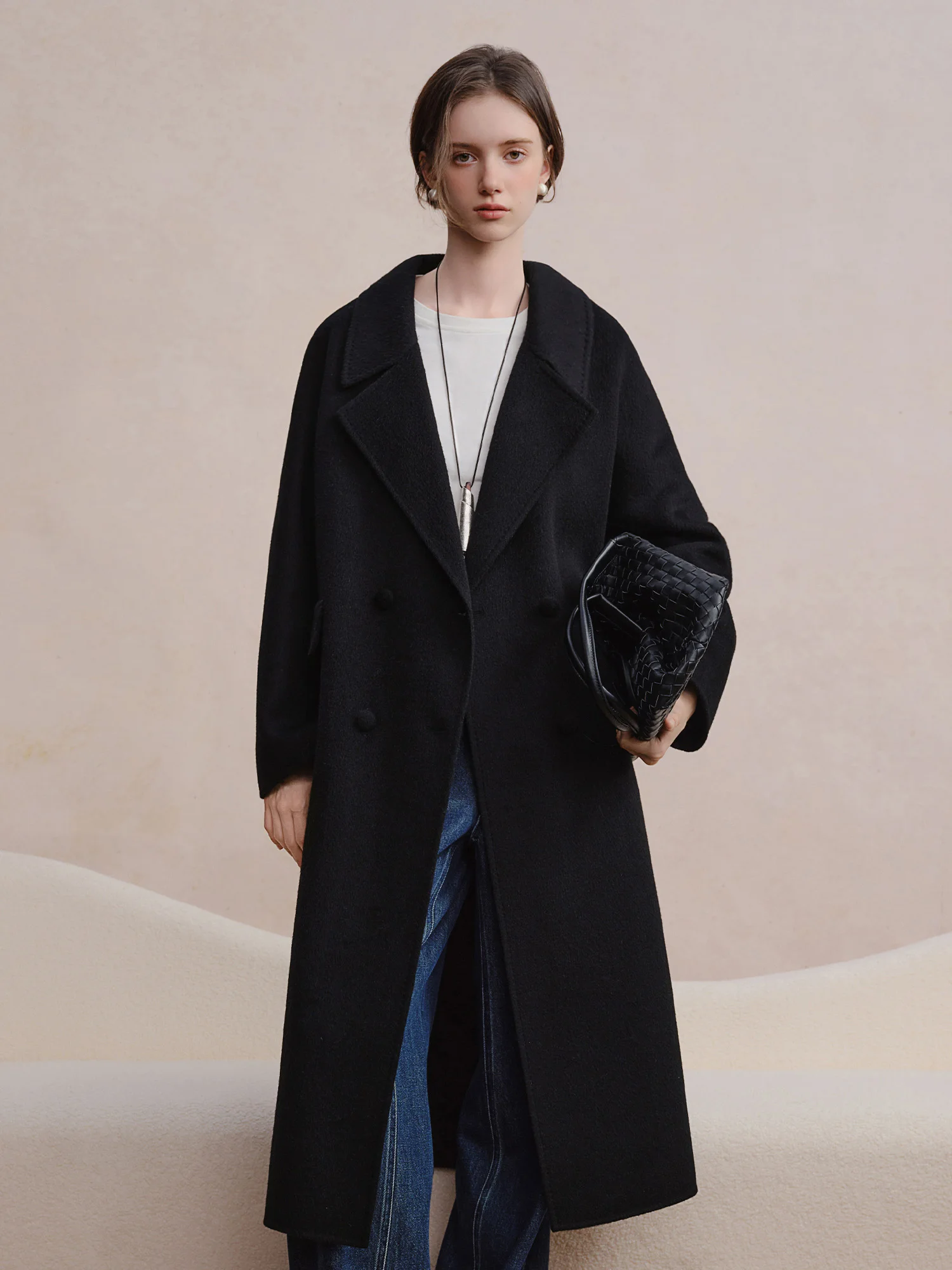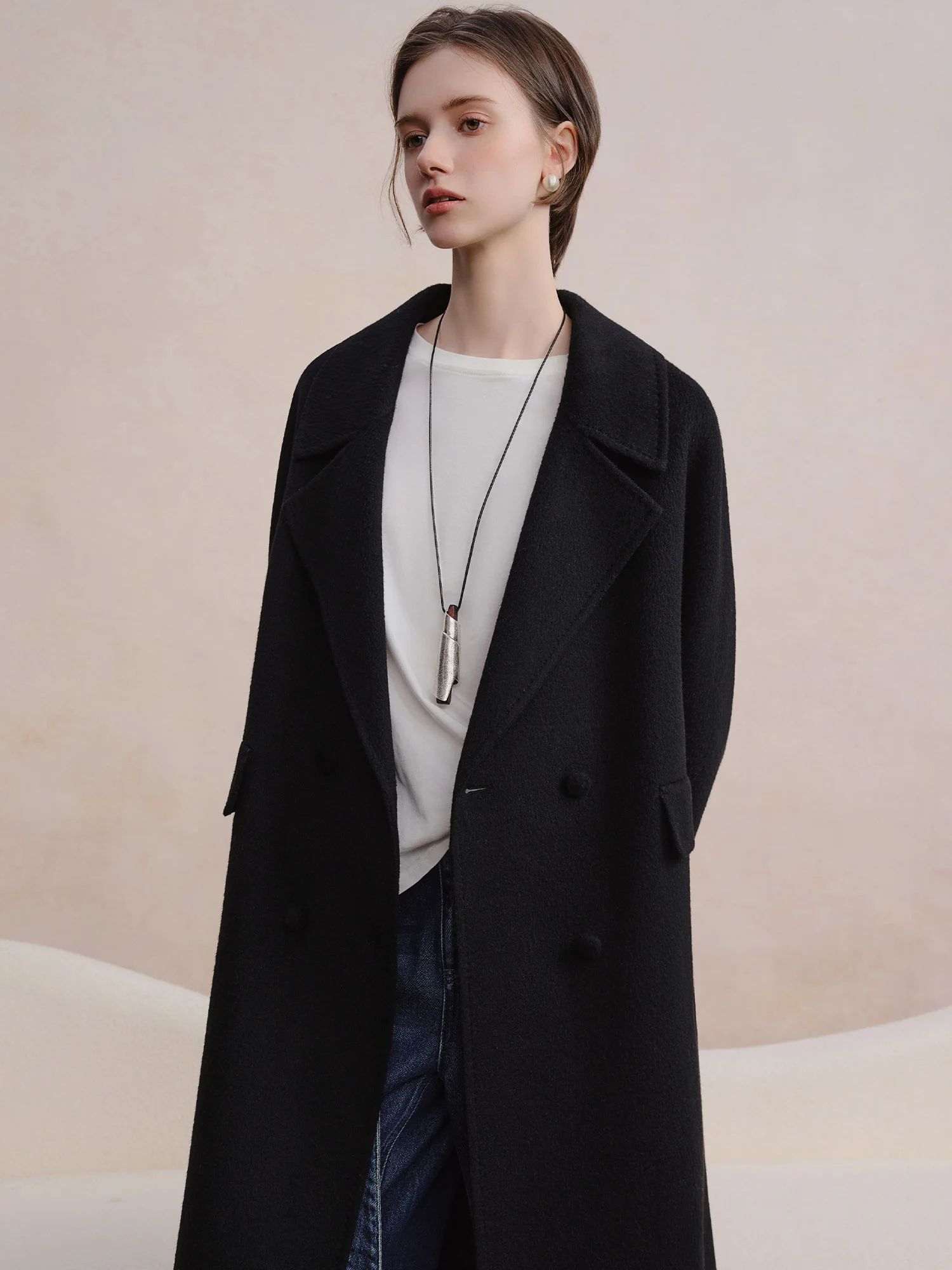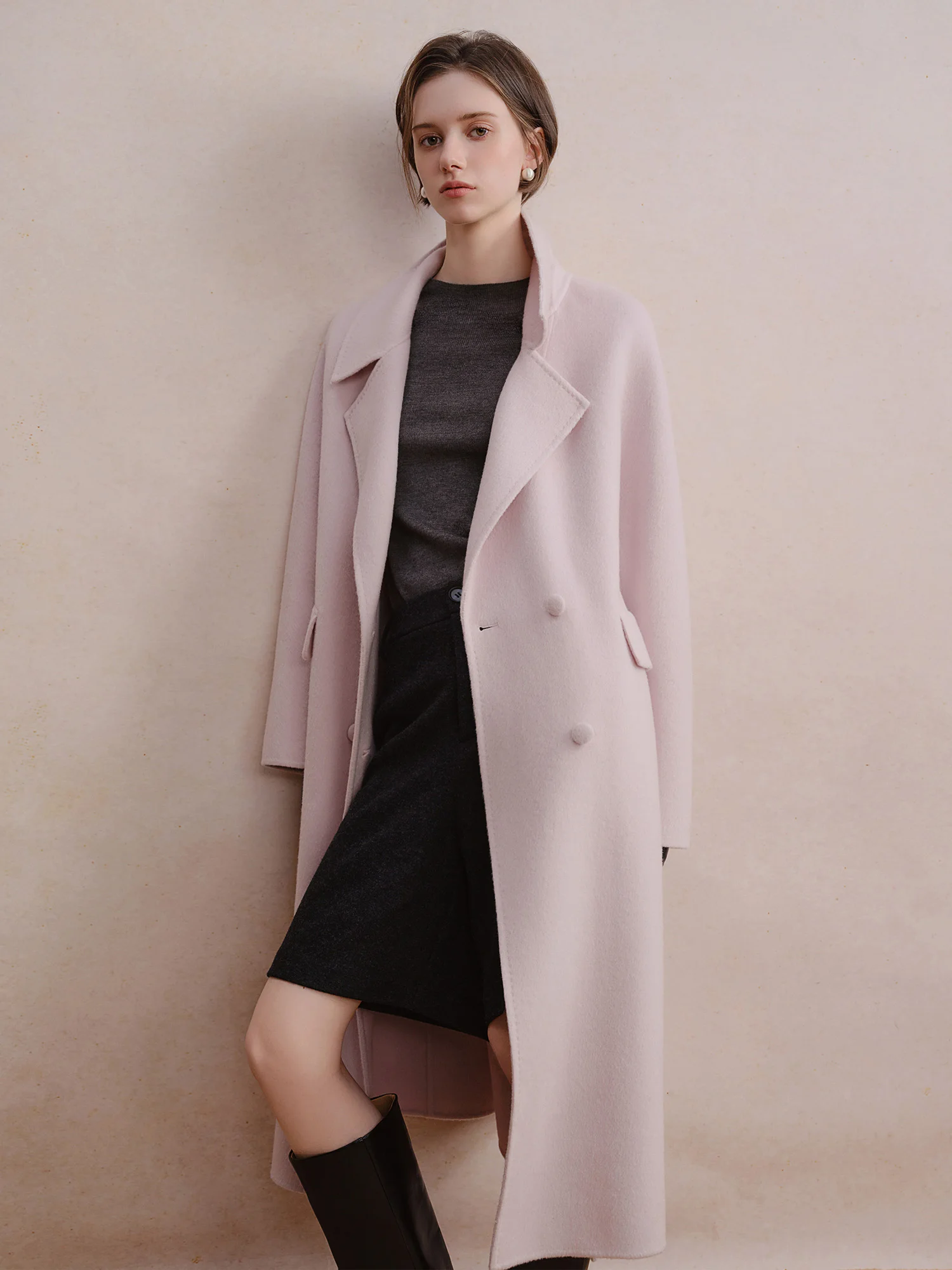 DUSHU Cappotto doppiopetto in lana di cashmere Elegante donna Pendolarismo Temperamento semplice Lunghezza a metà polpaccio Stile britannico