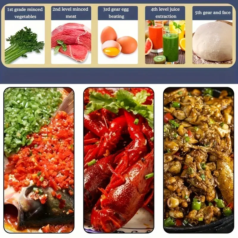 Robot da cucina in acciaio inossidabile da 5 litri con sistema a 6 lame – Tritacarne veloce e tritatutto per verdure, 5 velocità (spina europea)