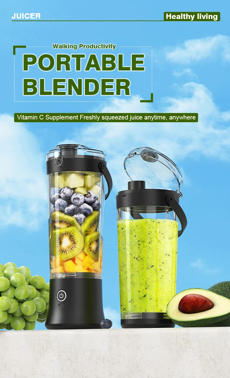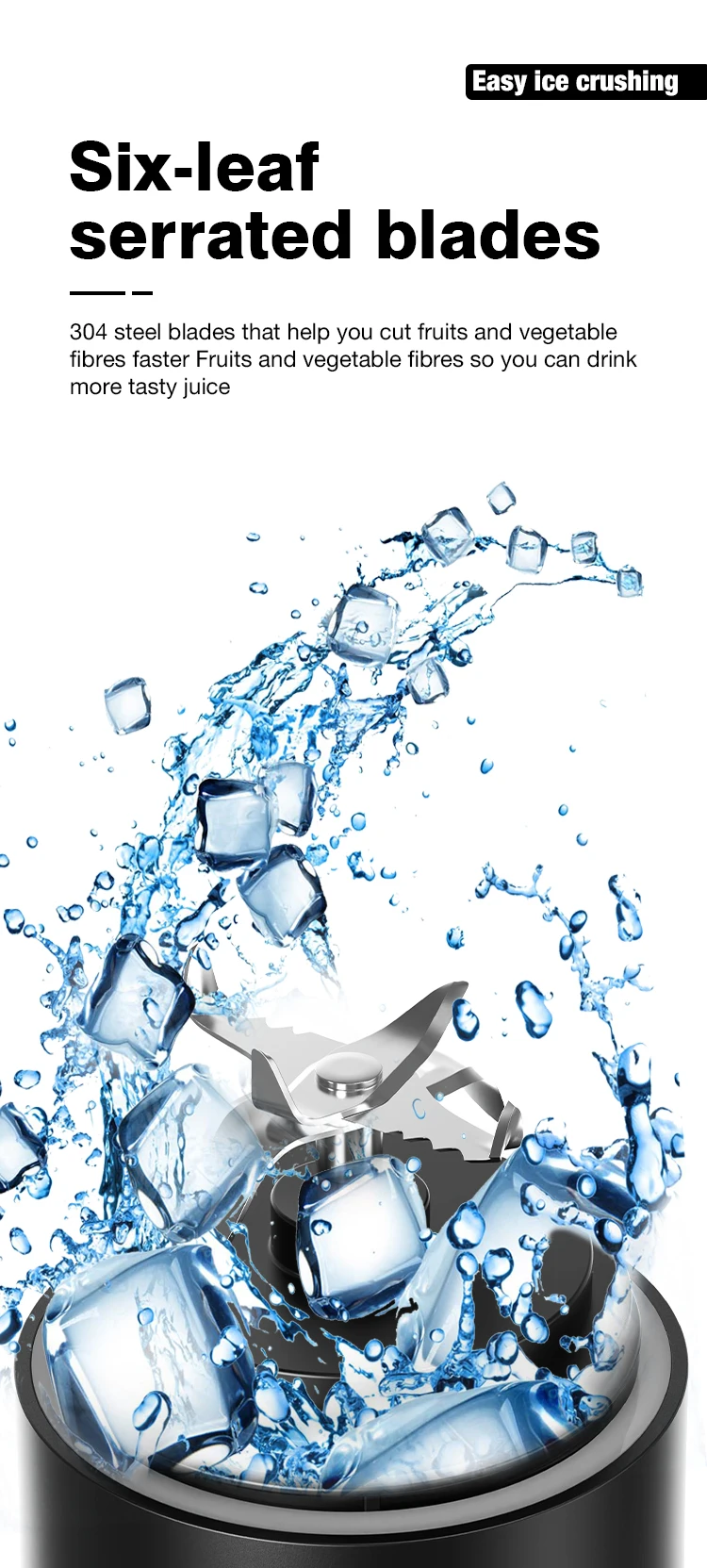 2.Con una capacità di 500 ml, c’è una capacità sufficiente per frutta, verdura e cubetti di ghiaccio.Sostituisci il coperchio sul fondo e hai un frullatore da viaggio, comodo per viaggiare, fare sport e fare barbecue