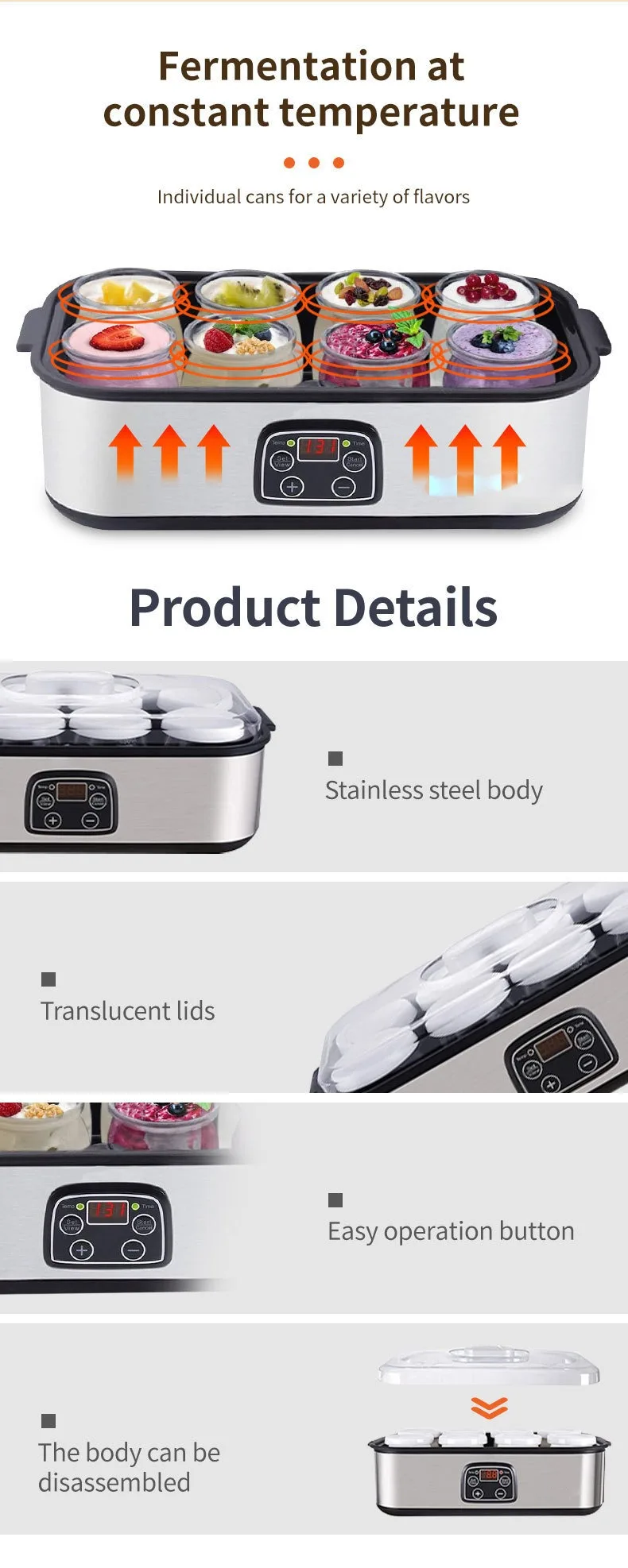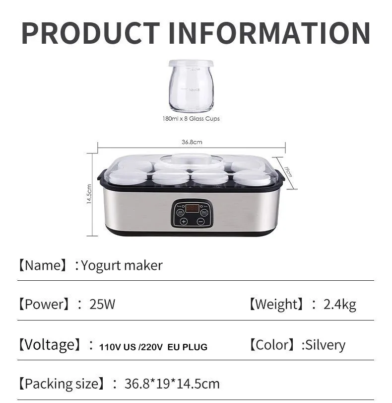 La macchina automatica per lo yogurt tratta il yogurt fatto in casa produttore professionale di budini per gelato con 8 vasetti di yogurt 110 V / 220 V