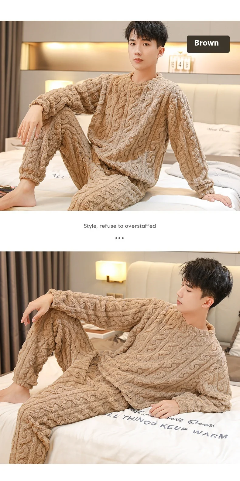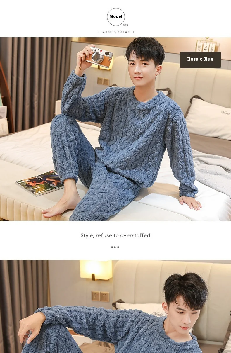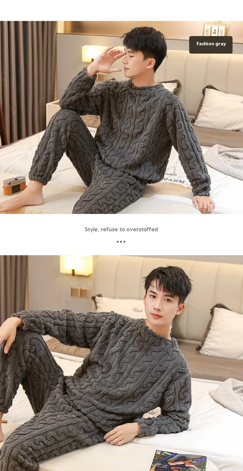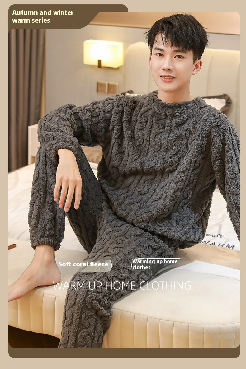Pigiama in pile corallo da uomo autunno e inverno imbottito addensato abito da casa caldo pigiama da donna per adolescenti completo da casa 1Pigiama in pile corallo da uomo autunno e inverno imbottito addensato abito da casa caldo pigiama da donna per adolescenti completo da casa