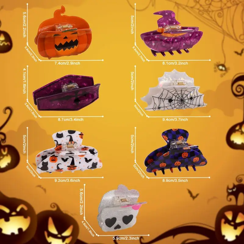 2 reviews for 1/7 pezzi di ragno scheletro di zucca a tema Halloween, fermaglio per capelli carino e divertente, fermaglio per squalo, accessorio per capelli da donna