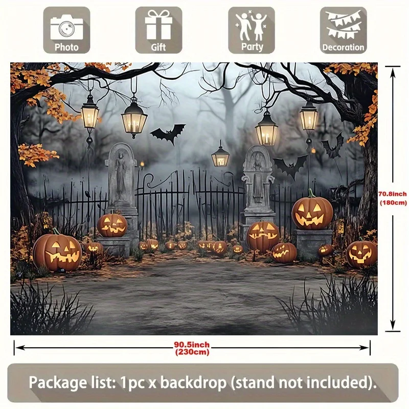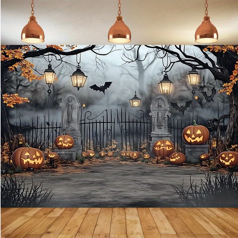 1 banner per feste di Halloween: tomba fantasma e lanterna di zucca, trail della foresta nebbiosa, decorazione di Halloween per interni ed esterni