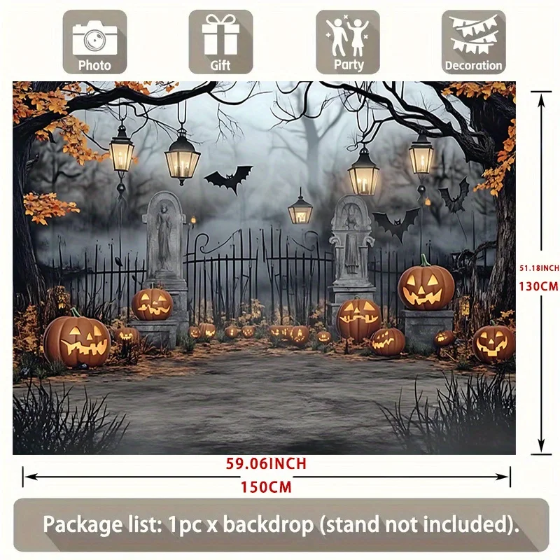 2 reviews for 1 banner per feste di Halloween: tomba fantasma e lanterna di zucca, trail della foresta nebbiosa, decorazione di Halloween per interni ed esterni