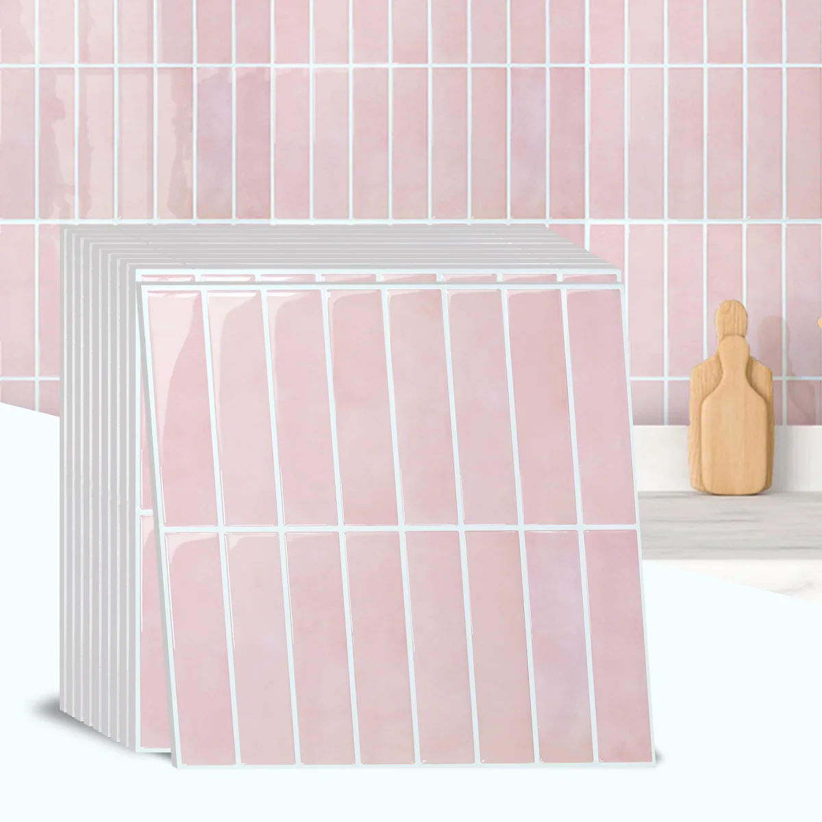 2 reviews for 10 adesivi per piastrelle rosa, 30,5×30,5 cm, vinile autoadesivo, facile da installare, decorazione da parete per camera da letto e cucina