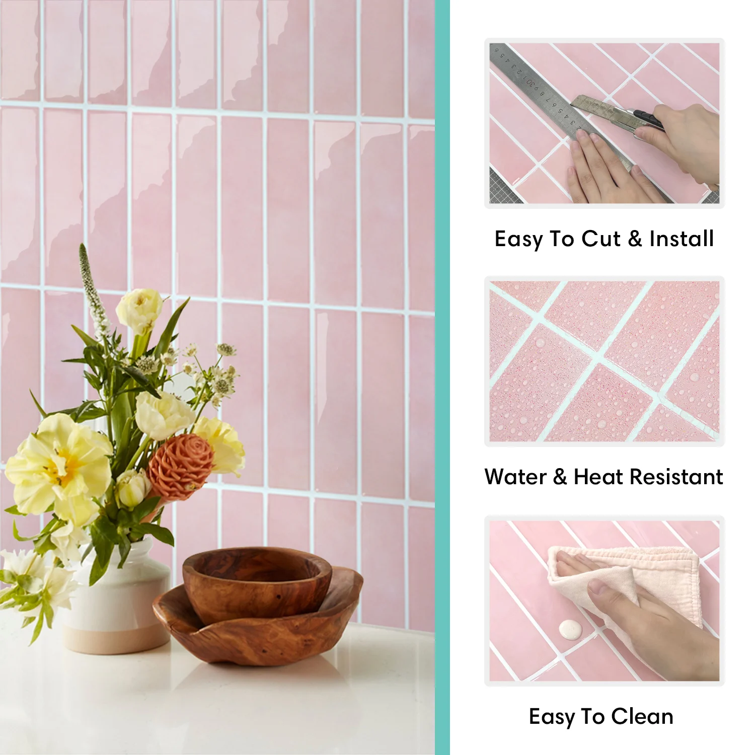 These wall stickers can withstand heat (up to 30 cm from stoves) and are waterproof—ideal for kitchens, bathrooms, and fireplaces. Not for use in shower stalls.