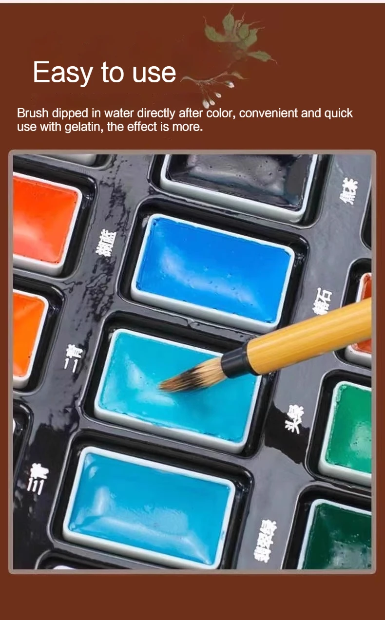 5 reviews for 12/24 colori cinesi pittura ad acquerello solido vernici ad acquerello professionali kit artistico portatile per cancelleria artistica per la scuola degli studenti