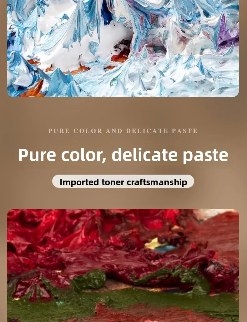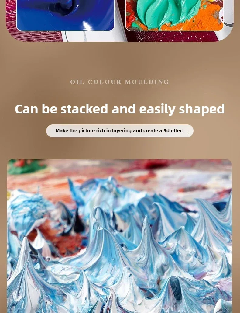 La vernice presenta una pasta fine e liscia, realizzata con processi di pigmenti importati e miscelazione perfettamente con olio di lino raffinato, garantisce una qualità eccezionale. Senza odore pungente, fornisce un’esperienza di utilizzo più sicura. È l’eccellente resistenza alla luce garantisce i colori dei tuoi lavori restano vibrazioni sopra il tempo. La possibilità della vernice deve essere facilmente impilabile e modellata consente di ricca stratificazione nei tuoi dipinti, creare facilmente effetti 3D e aggiungere possibilità infinite alle tue creazioni.