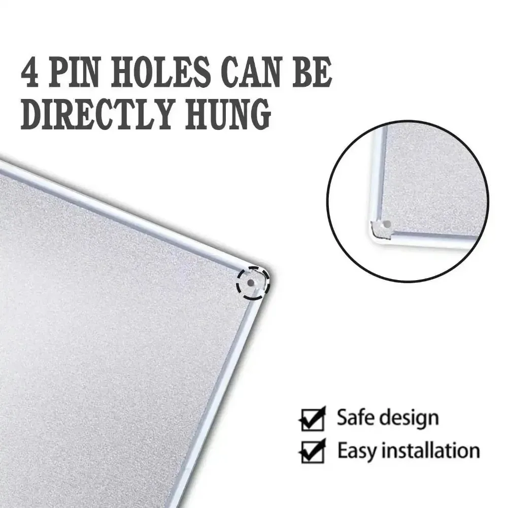 – Quattro piccoli fori preforati nell’angolo di questo cartello, possono essere montati sul muro con chiodi su 4 angoli o nastro biadesivo, o possono essere posizionati nel tavolo, o da appendere al muro.