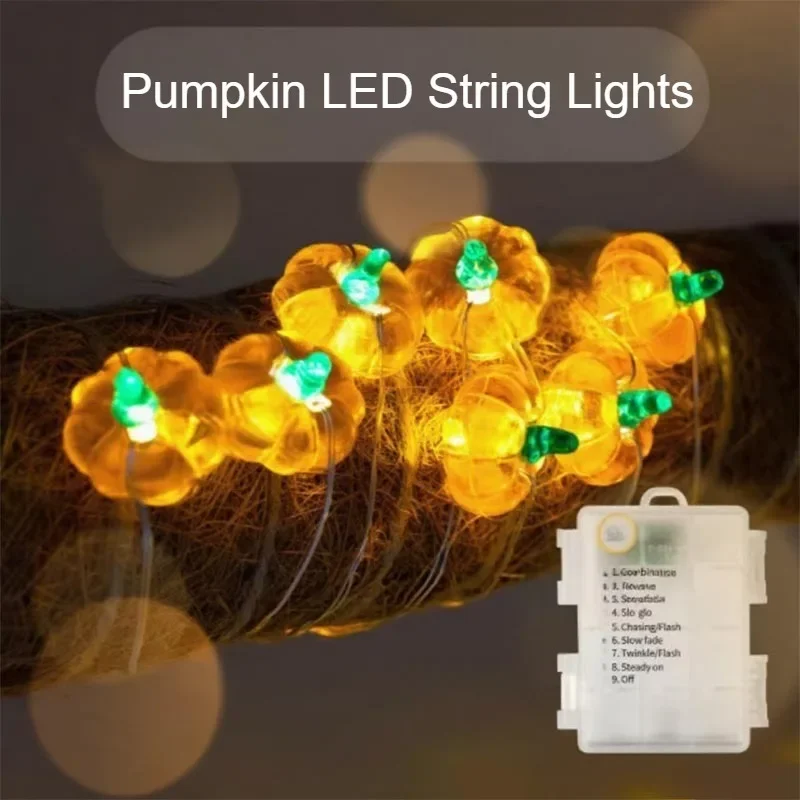 1M 10 luci a stringa LED zucca ghirlanda portatile decorazione felice festa di Halloween per l’atmosfera del bar di casa arredamento del Ringraziamento
