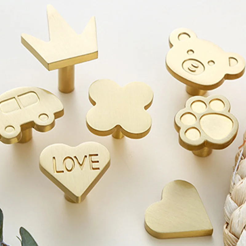 1pc Maniglie per porte in ottone a forma di cuore Zampa di gatto Orso Maniglie per mobili Decorazione Armadio Armadi Cassetti Manopole Camera da letto