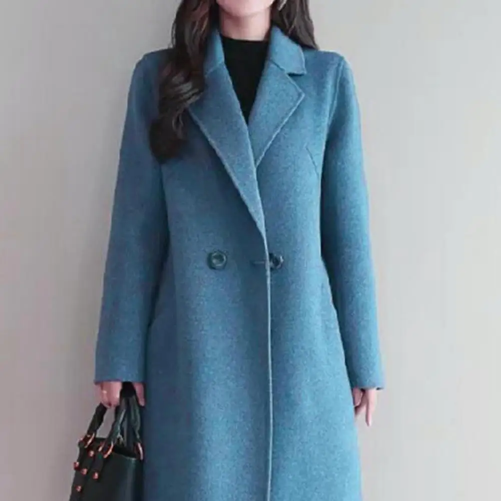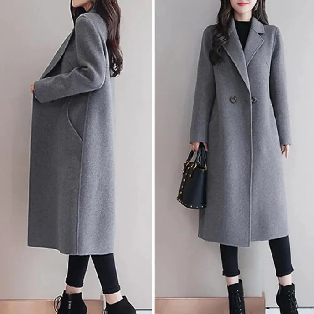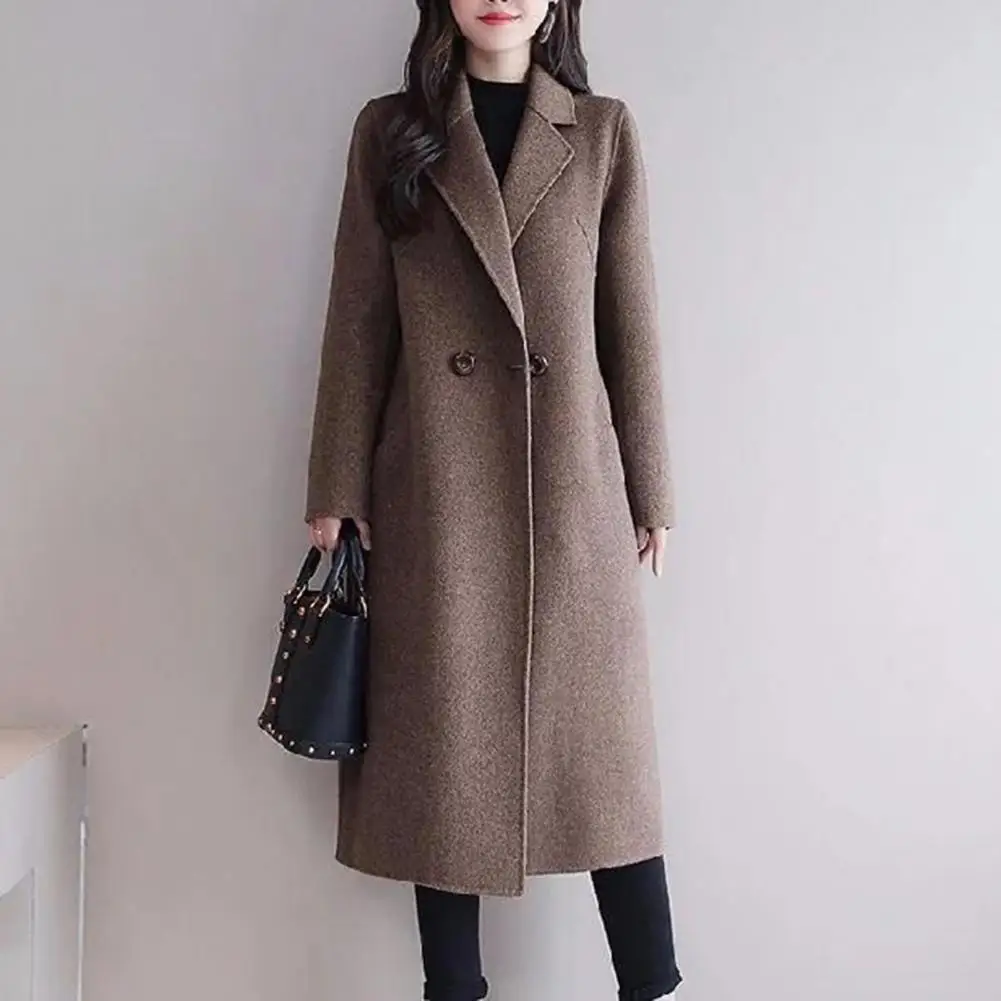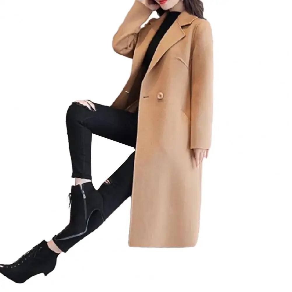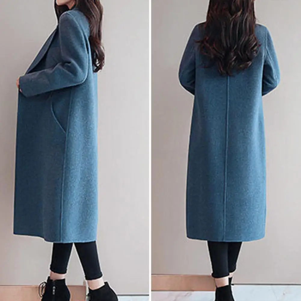 Cappotto di lana da donna autunno inverno tinta unita risvolto manica lunga due bottoni tasche cardigan di lana di media lunghezza capispalla
