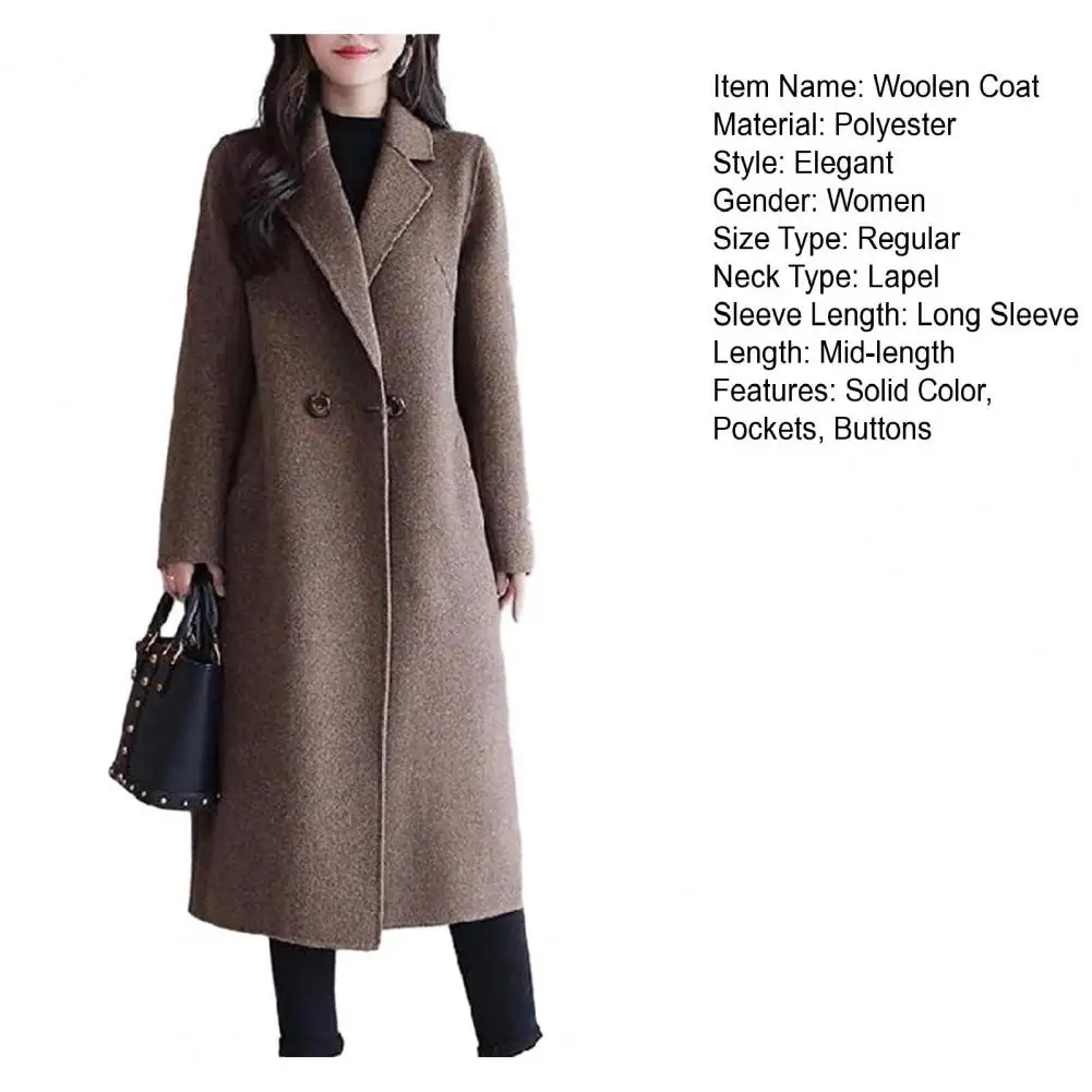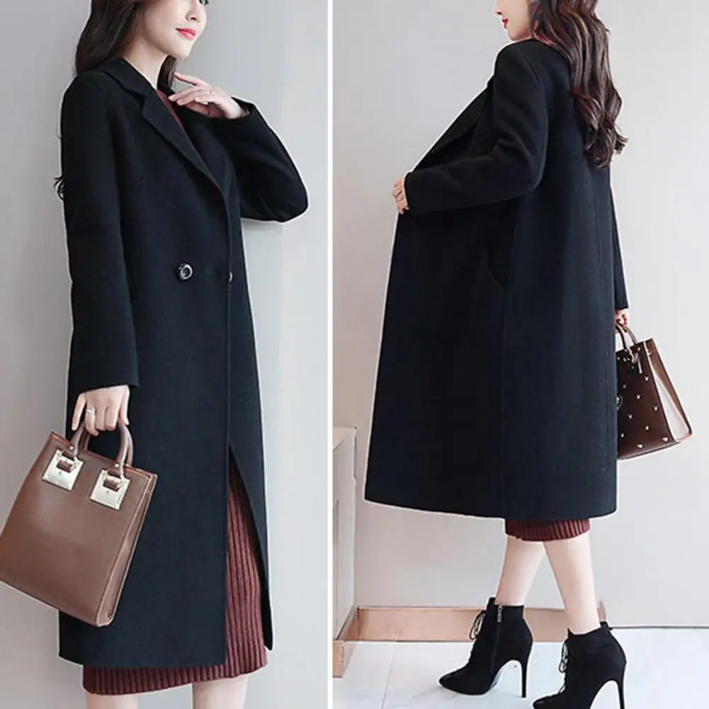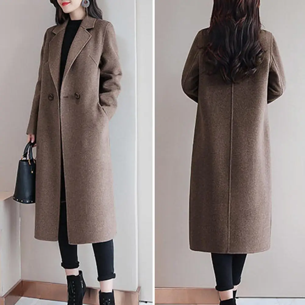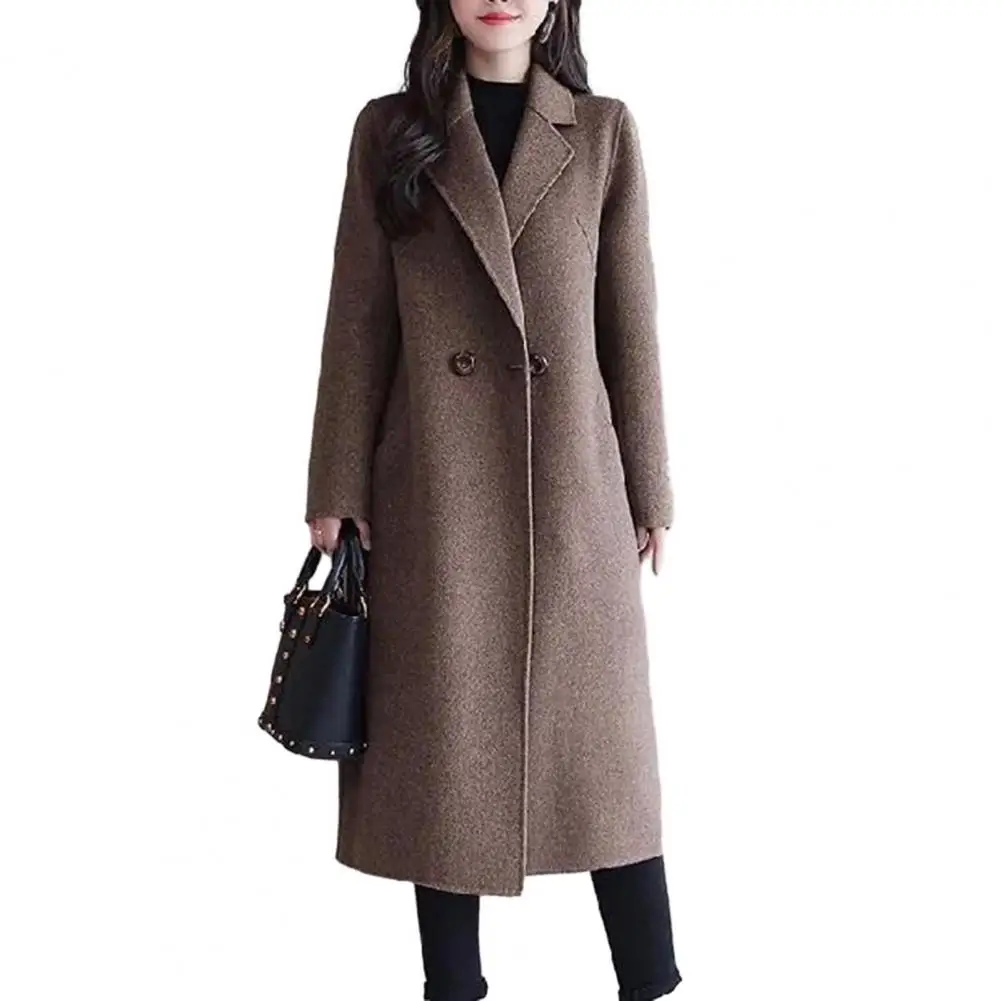 Cappotto di lana da donna autunno inverno tinta unita risvolto manica lunga due bottoni tasche cardigan di lana di media lunghezza capispalla