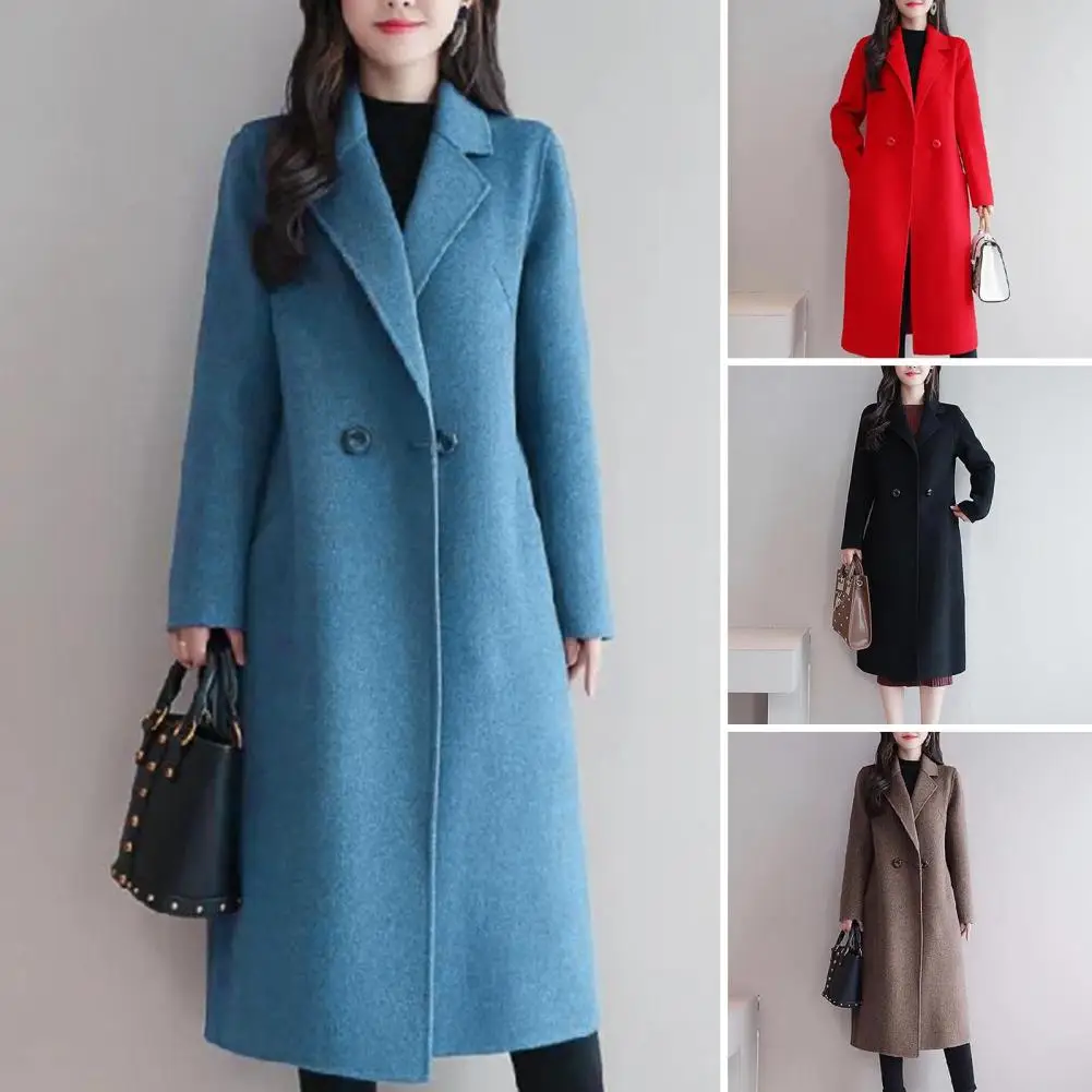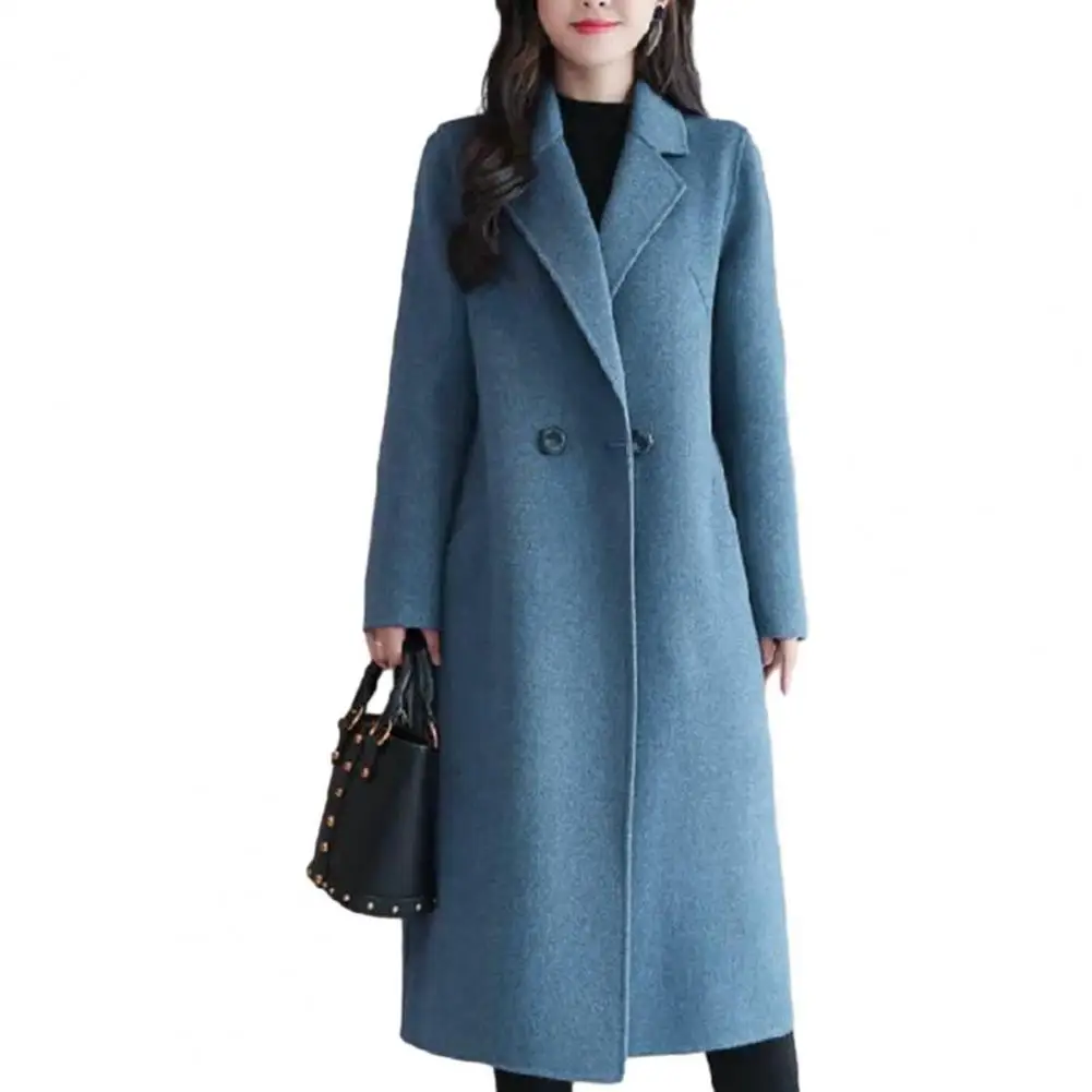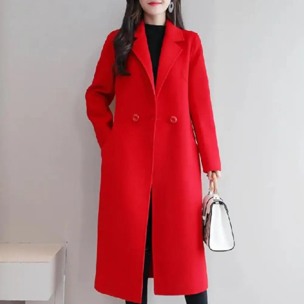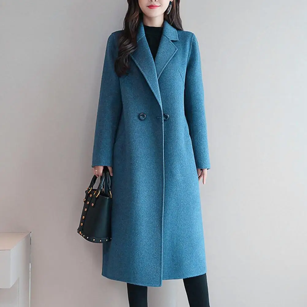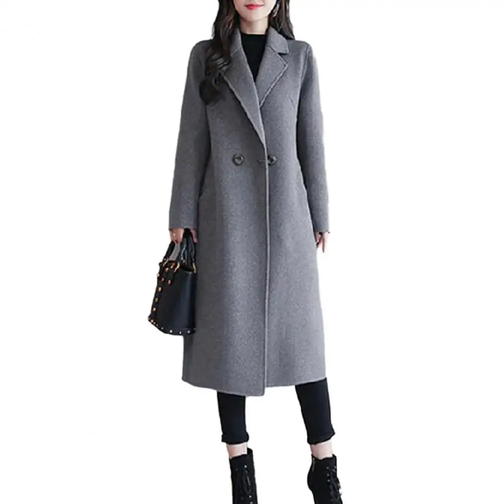 Cappotto di lana da donna autunno inverno tinta unita risvolto manica lunga due bottoni tasche cardigan di lana di media lunghezza capispalla